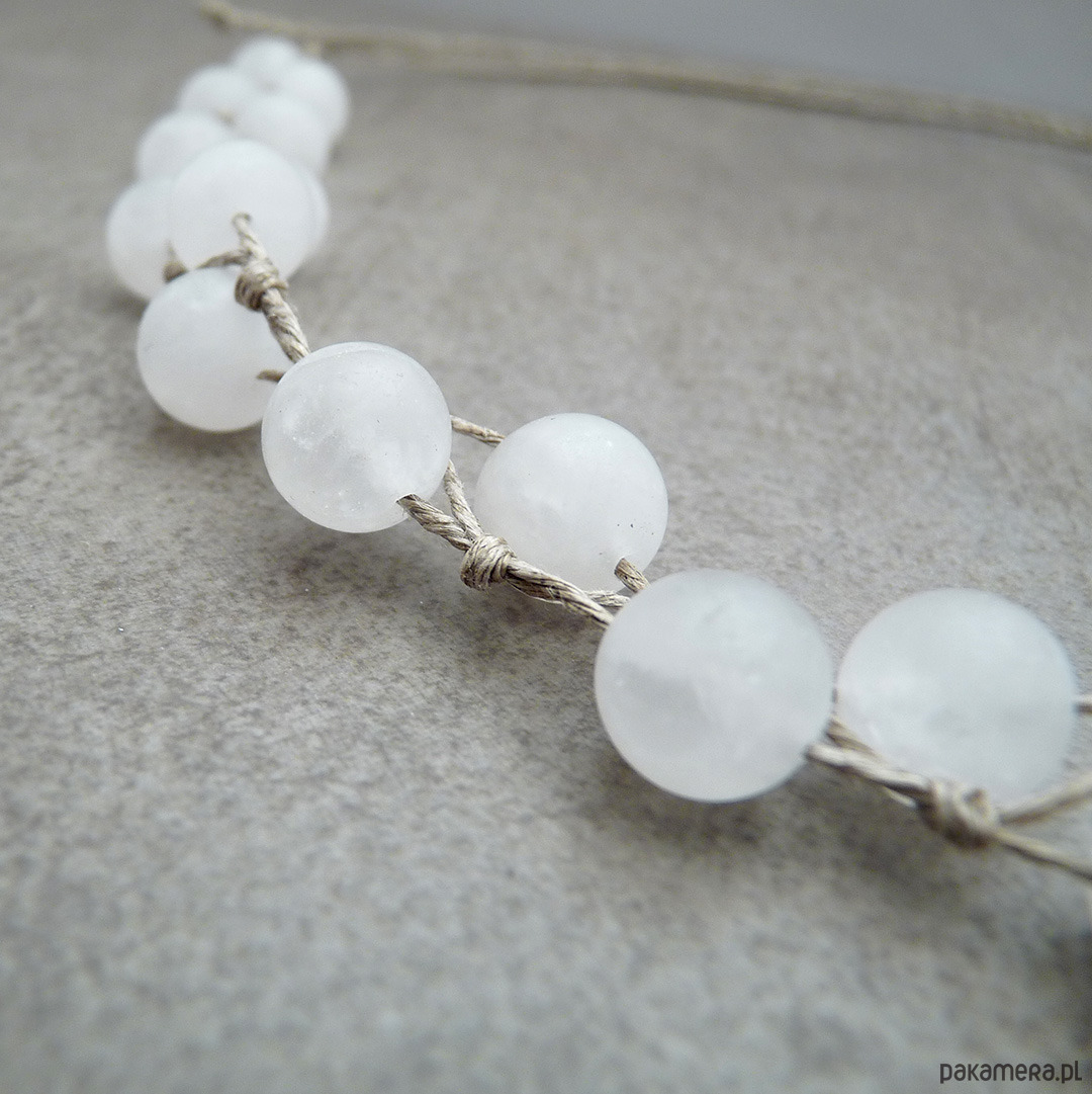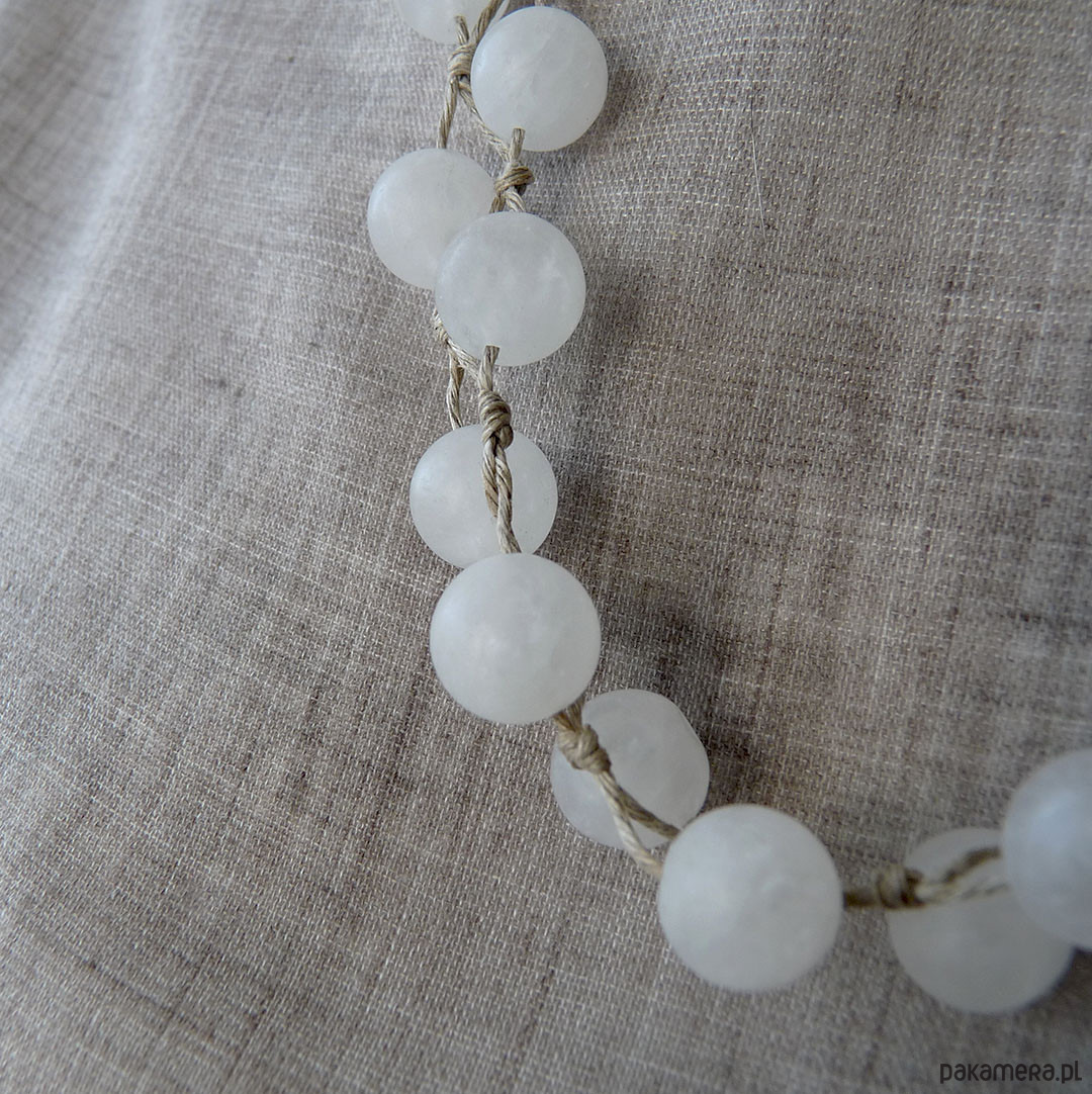 jadeit biały matowy 10 mm (odcień brudnobiały), len naturalny