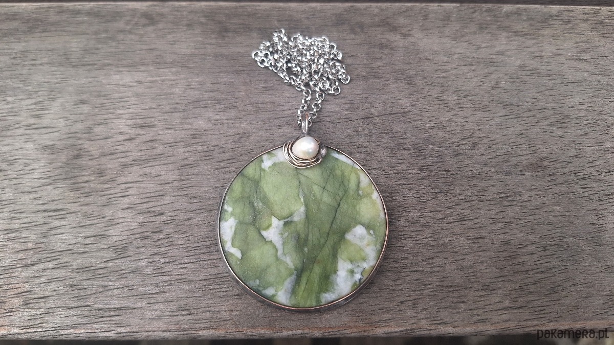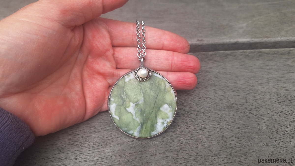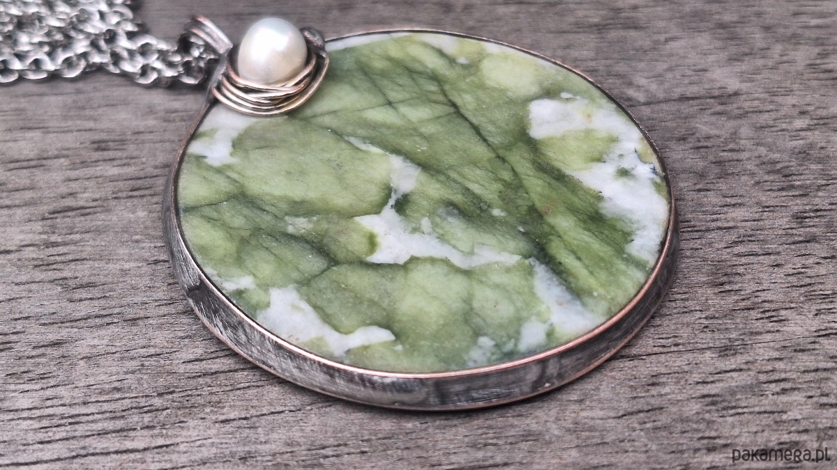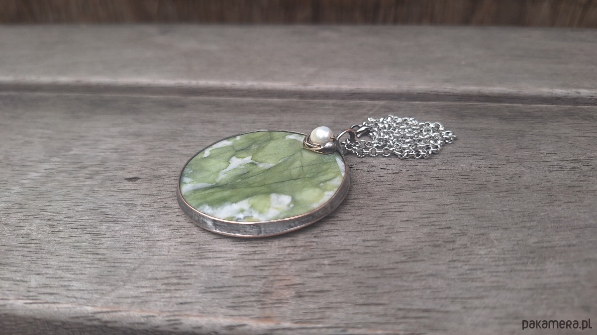 Jadeit z perłą - wisiorek
