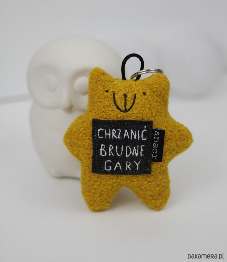 Jadźka mierzy sobie blisko 10,5 cm, zaopatrzona została w filcową plakietkę z wyhaftowaną deklaracją.