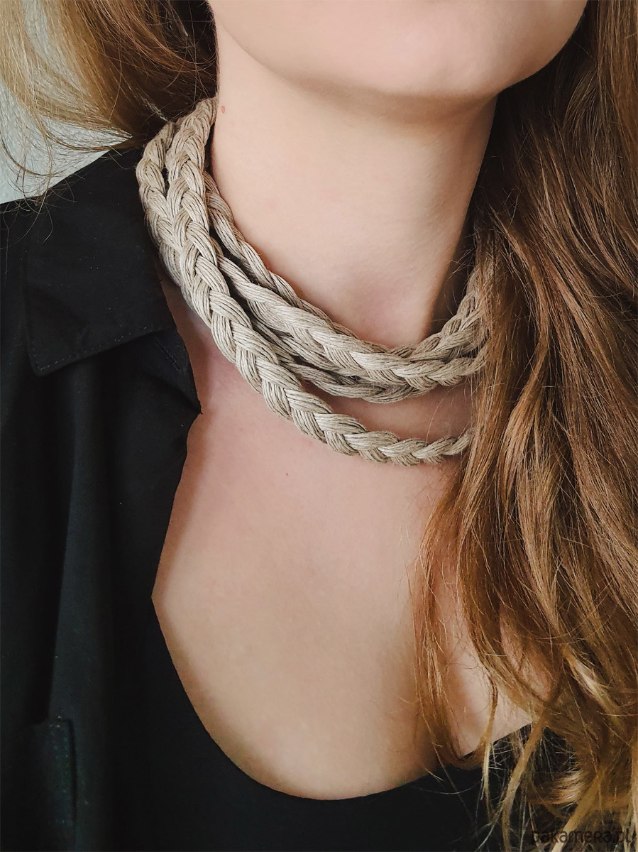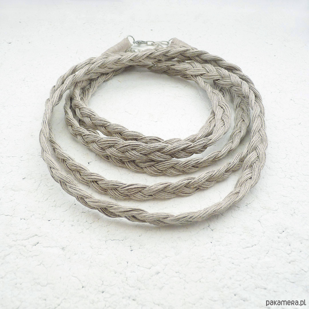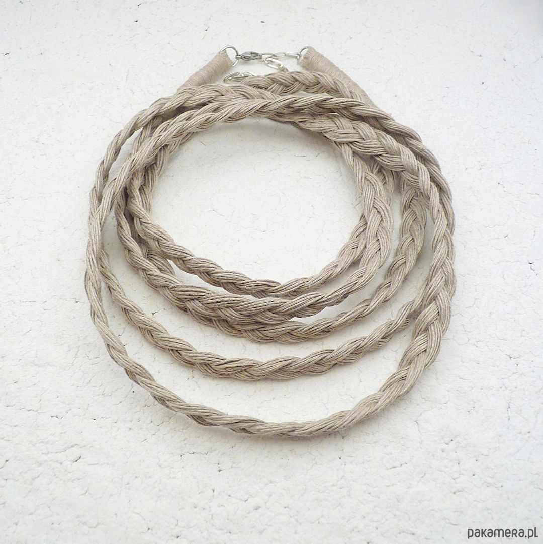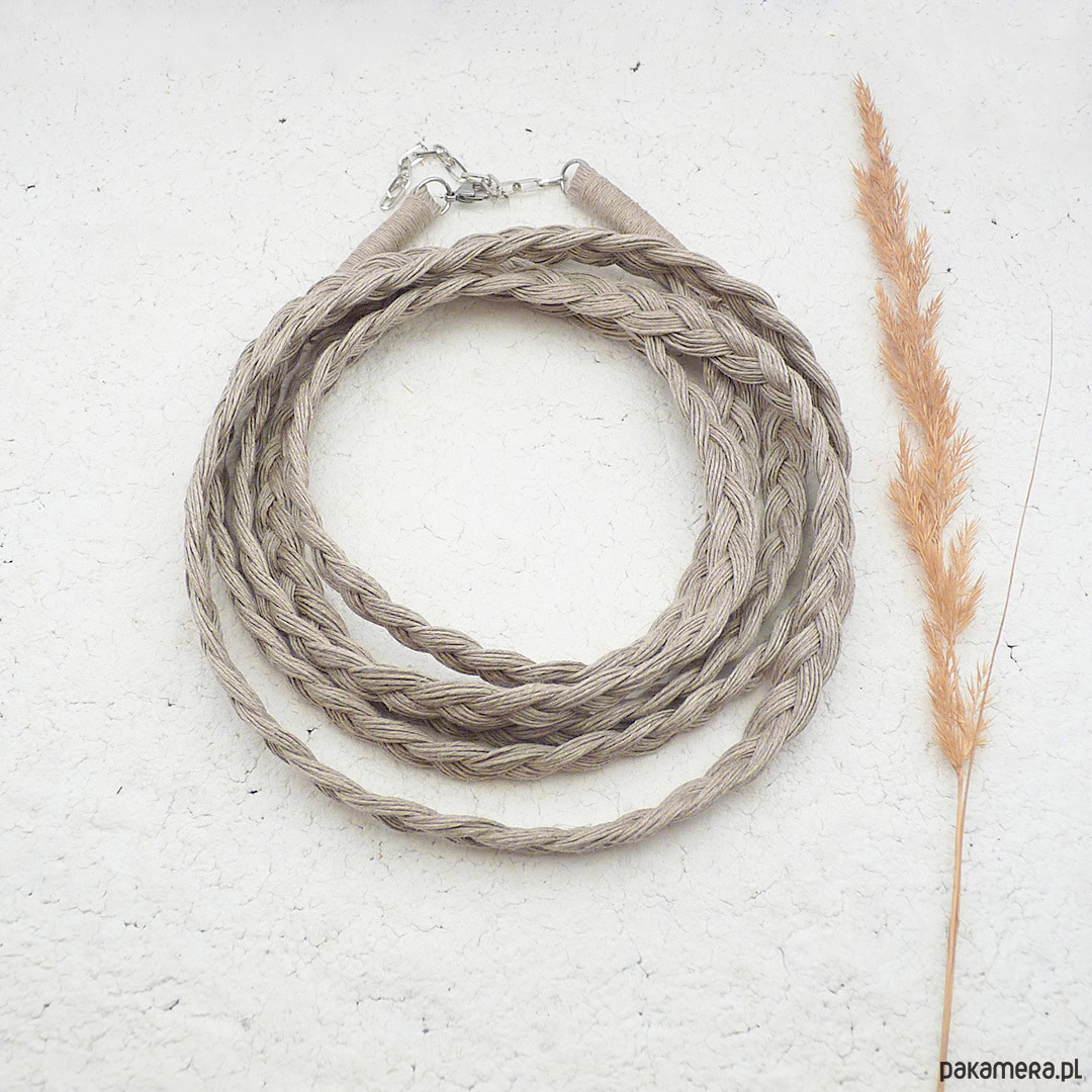 Oryginalny naszyjnik ręcznie wypleciony z naturalnych nitek lnu