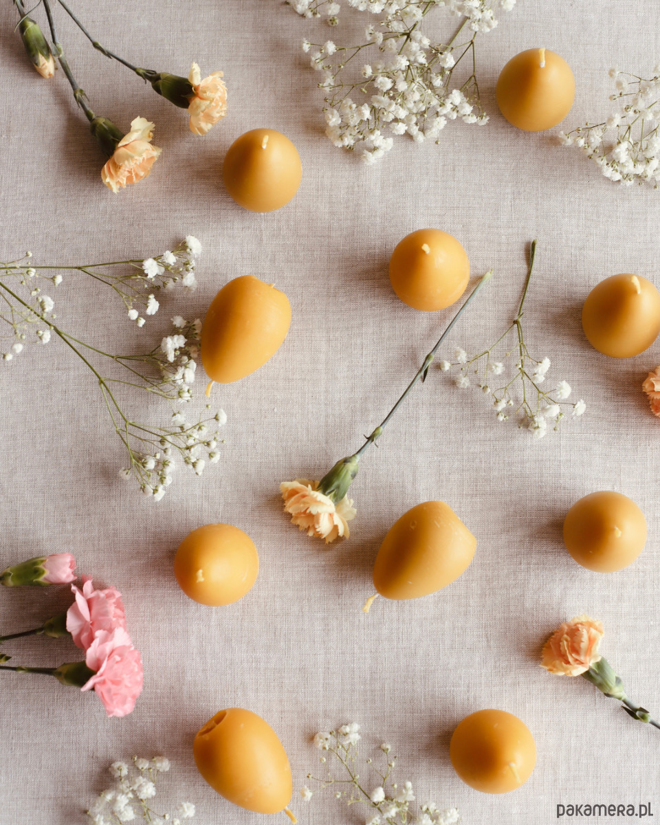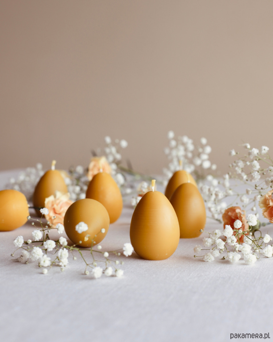 Świece z wosku pszczelego w kształcie jajek, stworzone by dodać uroku i wprowadzić wyjątkowy klimat podczas Świąt Wielkanocnych.