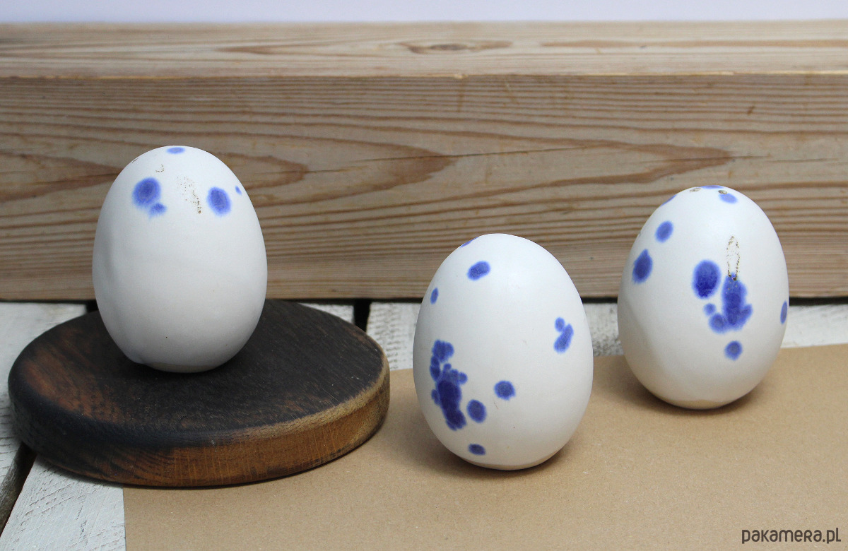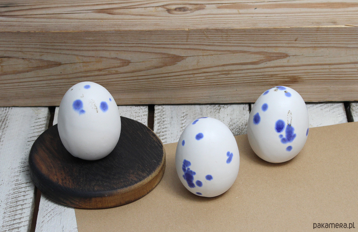 Zestaw składa się z 3 jajek wysokości 8 cm, satynowe, matowe, delikatnie nakrapiane. Wszystko w delikatnym białym kolorze.Wszystkie elementy unikatowe.Ręcznie wykonane. Serdecznie polecam!