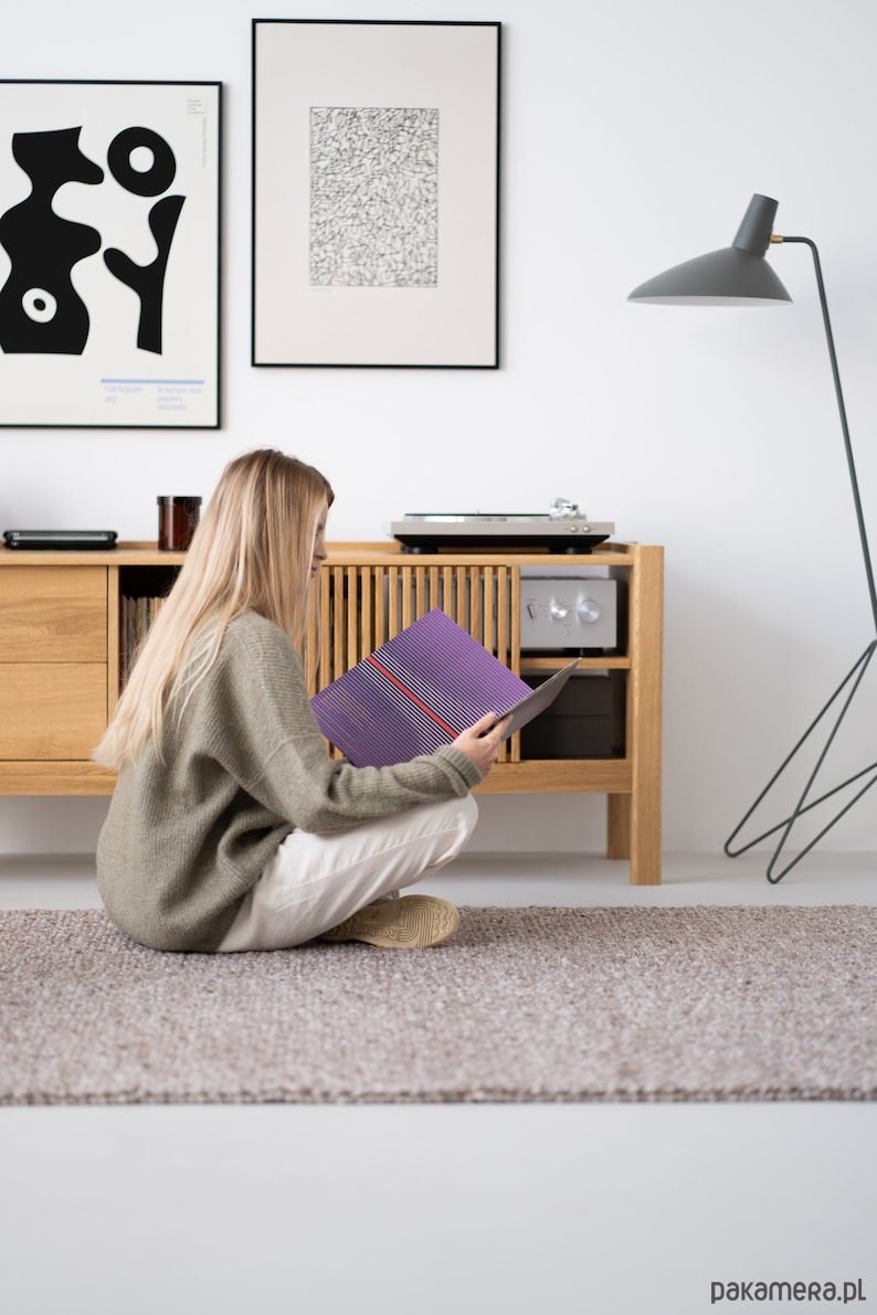 JAMM LOW została zaprojektowana z myślą o miłośnikach winyli, którzy cenią sobie jakość i styl. Jej kompaktowa forma doskonale wpasuje się w niewielkie przestrzenie, jednocześnie oferując przemyślane rozwiązania przechowywania. Z łatwością pomieści gramofon, wzmacniacz oraz do 150 płyt winylowych, stając się idealnym meblem na start Twojej przygody z muzyką.