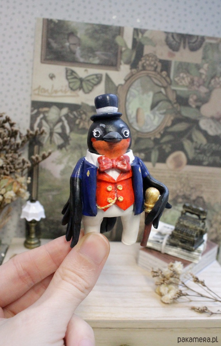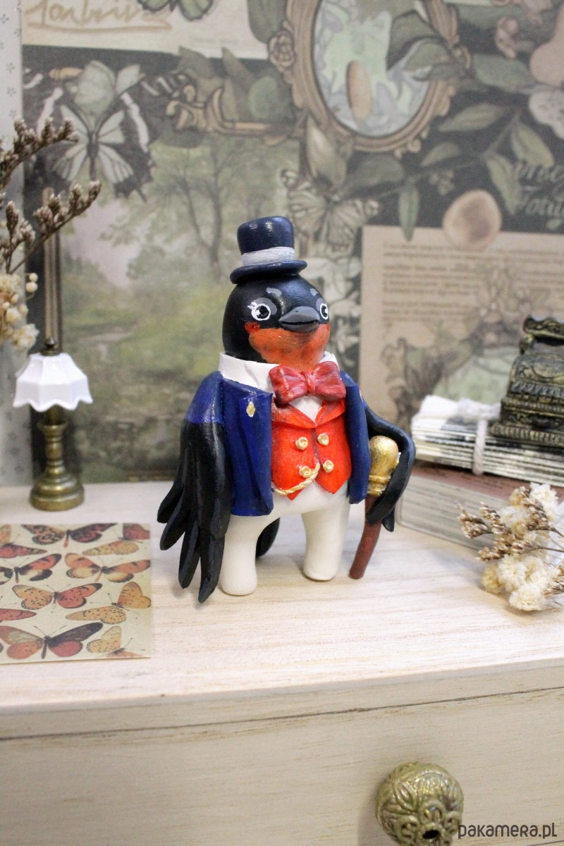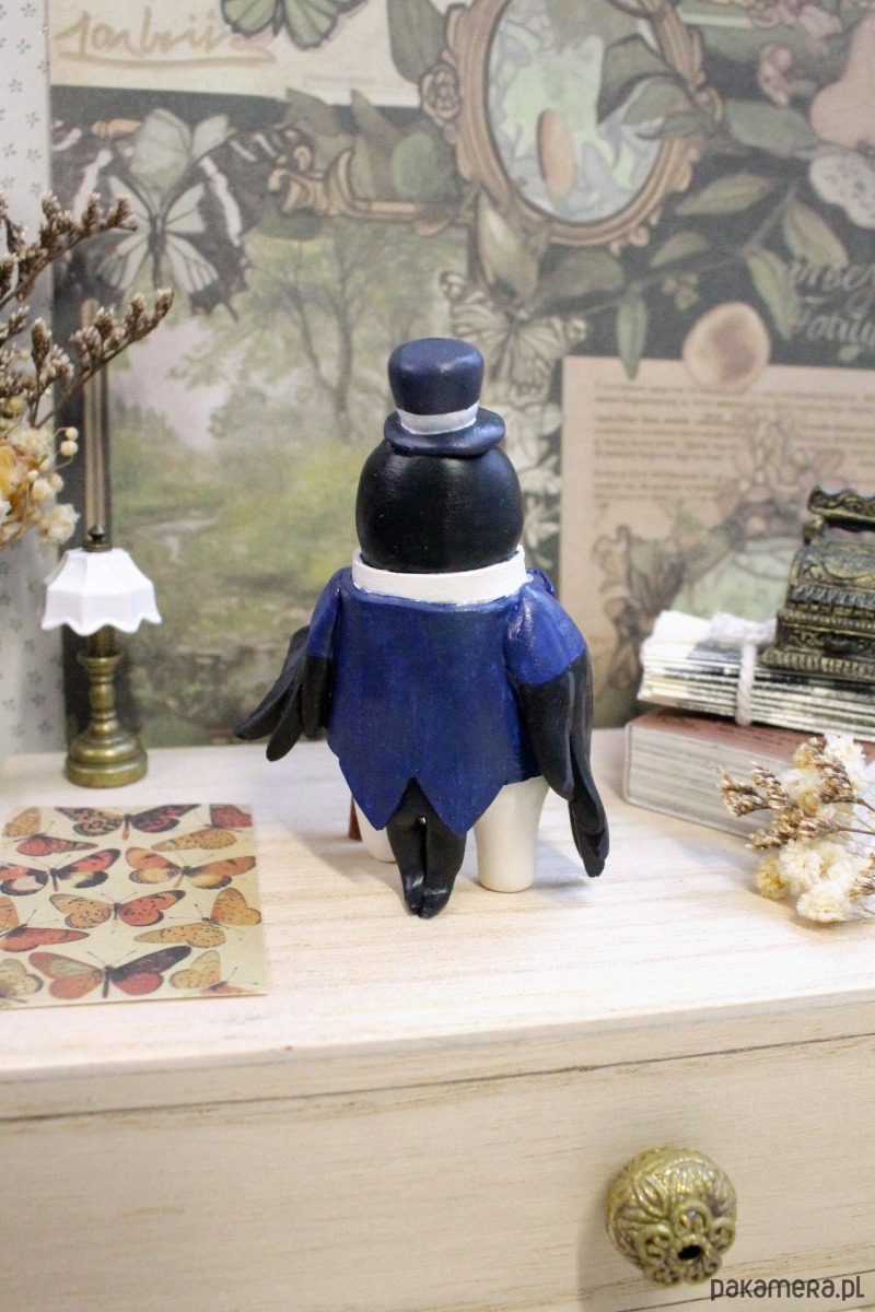 Ta figurka została wykonana ręcznie z gliny polimerowej wysokiej jakości. Każdy detal powstał z miłością i dbałością o najmniejsze szczegóły, co nadaje jej wyjątkowy charakter. Figurkę pomalowano ręcznie farbami akrylowymi i pokryto lakierem ochronnym.