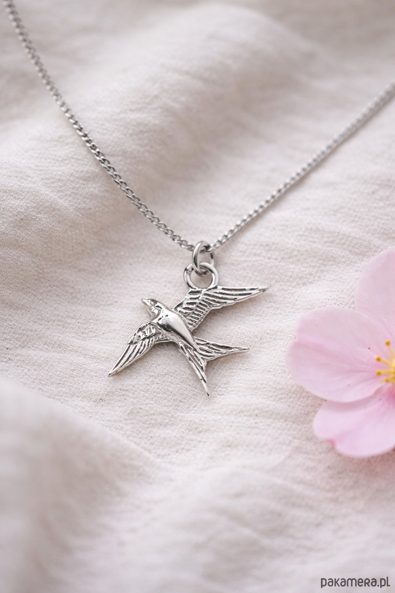 Naszyjnik Jaskółka to subtelna biżuteria o wyjątkowym znaczeniu. Delikatna forma ptaka w locie przyciąga spojrzenie, a jednocześnie pozostaje minimalistyczna i ponadczasowa. To model, który doskonale uzupełni codzienne stylizacje, ale sprawdzi się również jako symboliczny akcent na wyjątkowe okazje.