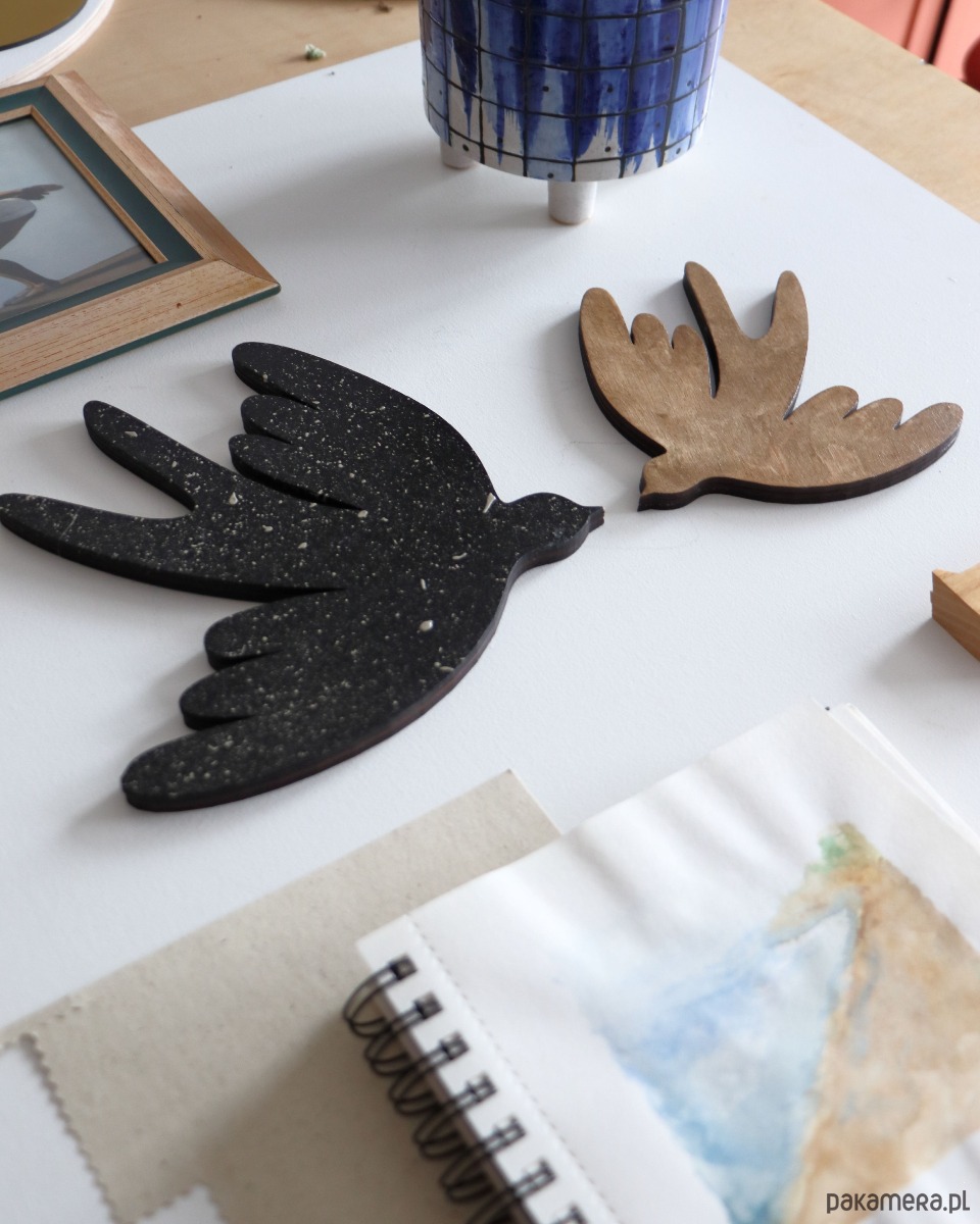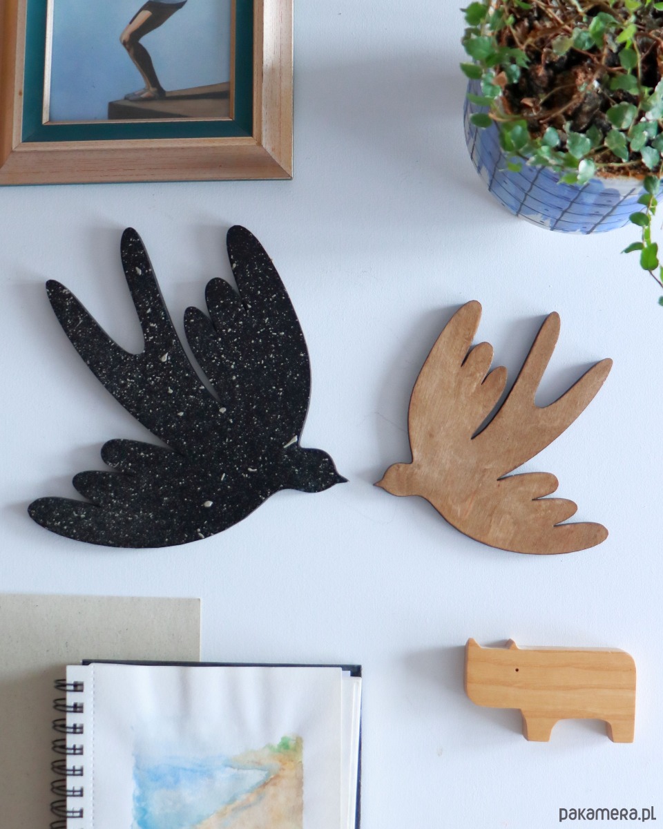 Jaskółki drewniany dekor komplet czarna nakrapiana i dąb