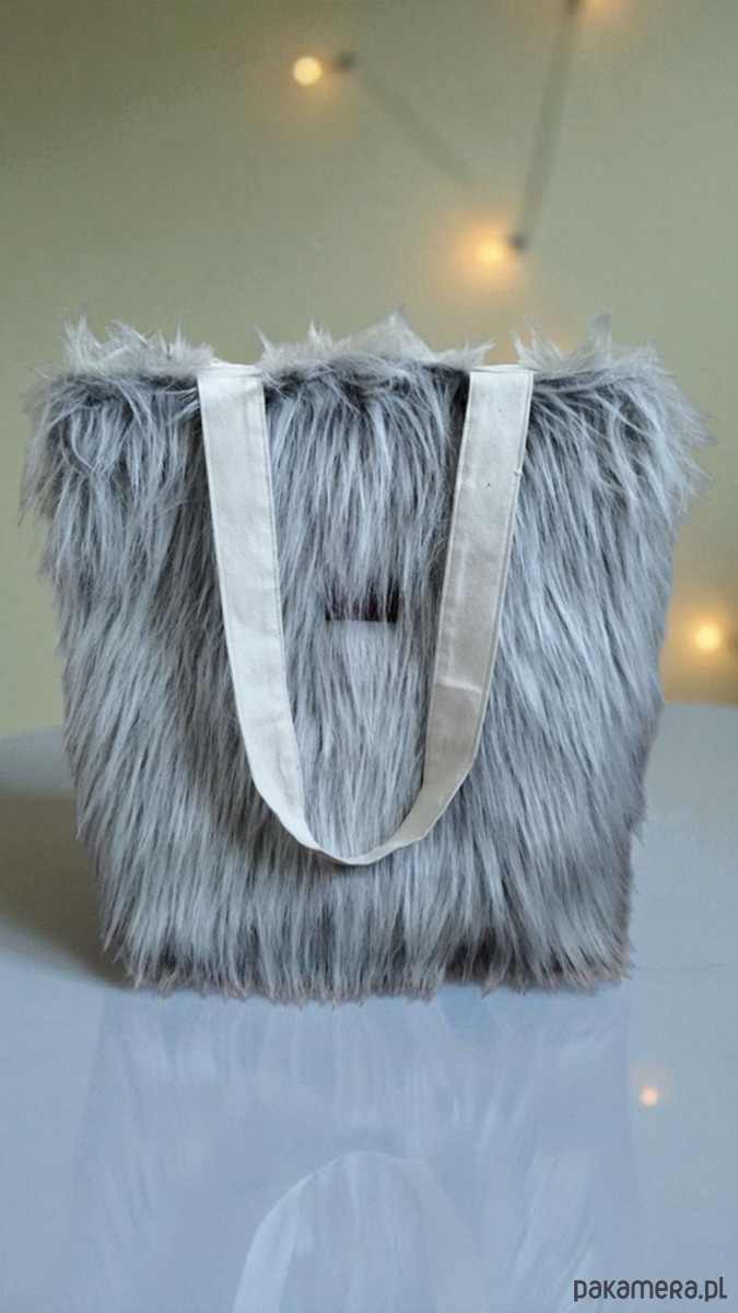 Torba na ramię z jasnego, sztucznego futerka. Długi włos, torba miła w dotyku.