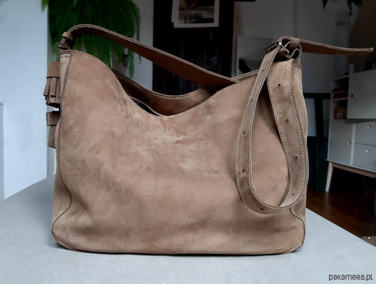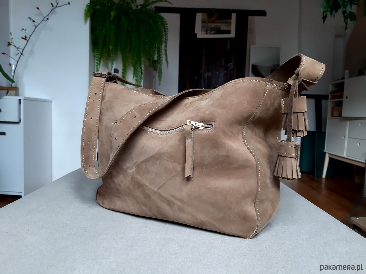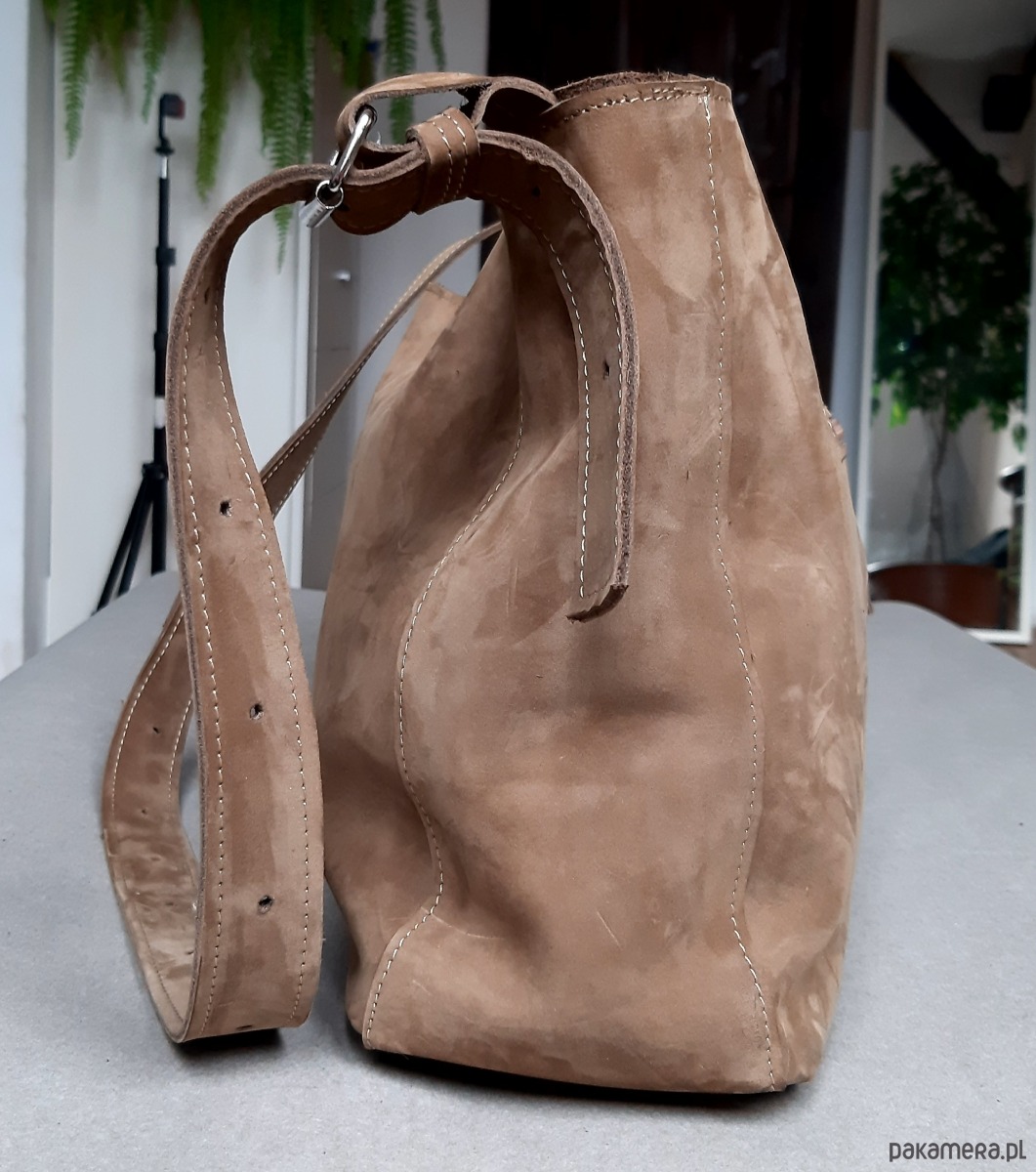 Jasnobrązowa torba z naturalnego nubuku