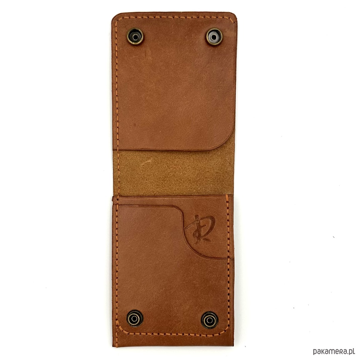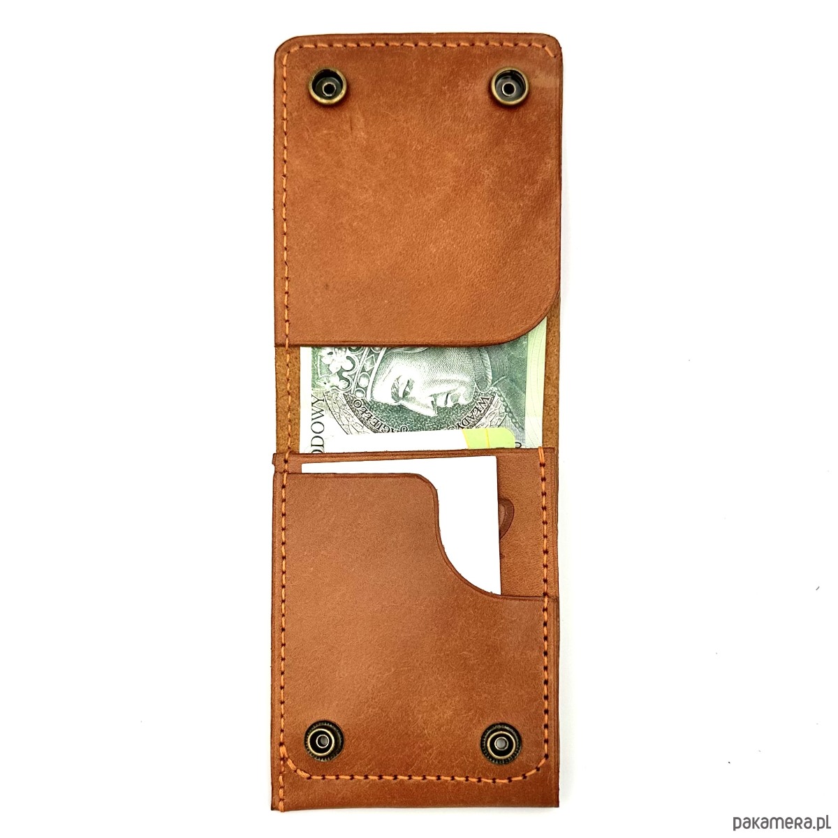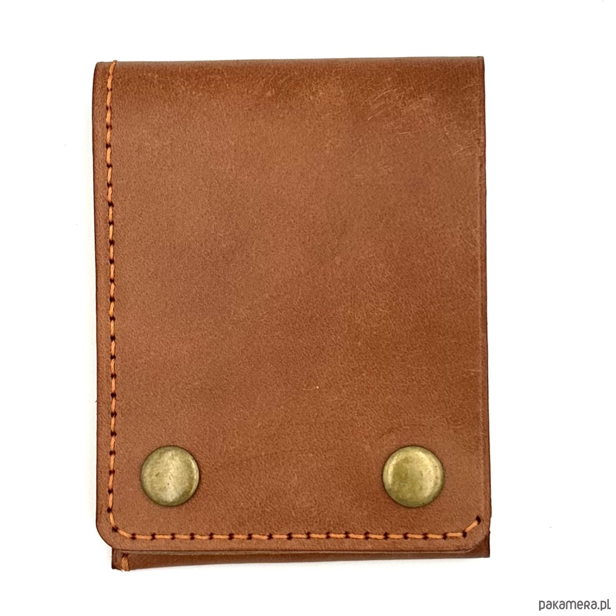 Jasno-brązowy portfel skórzany ręcznie uszyty na karty.