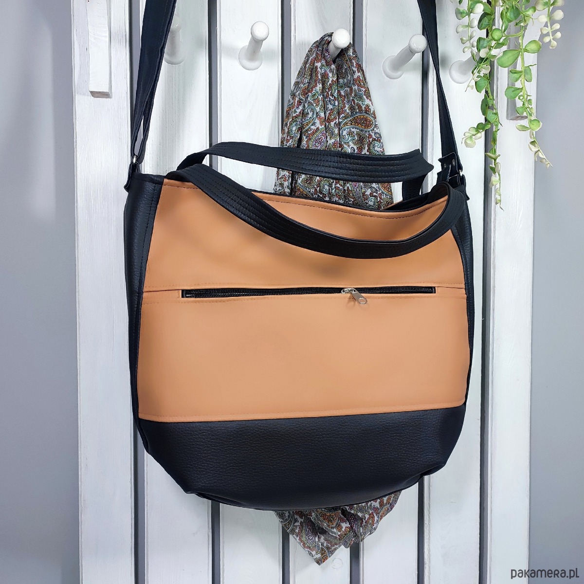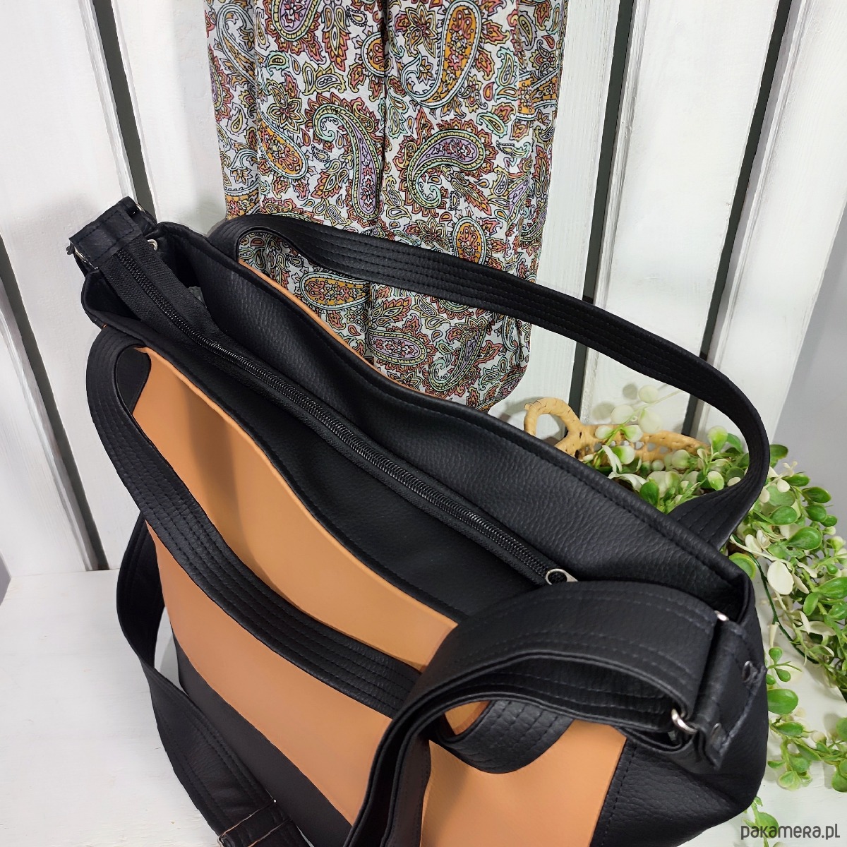 Jasnobrązowa torba 3w1, listonoszka shopper, torebka damska do ręki