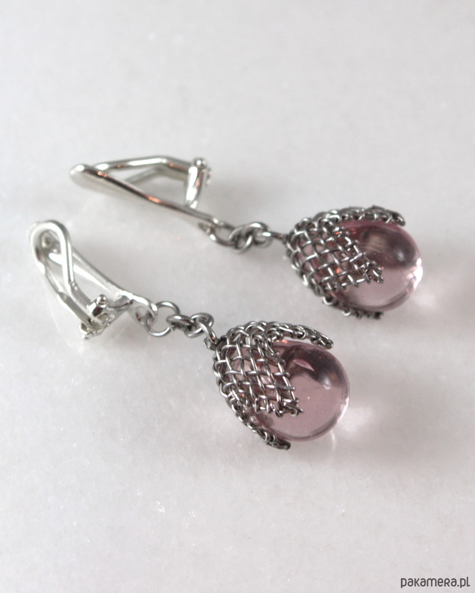 Jasnoróżowe w siateczce - klipsy (lub kolczyki)