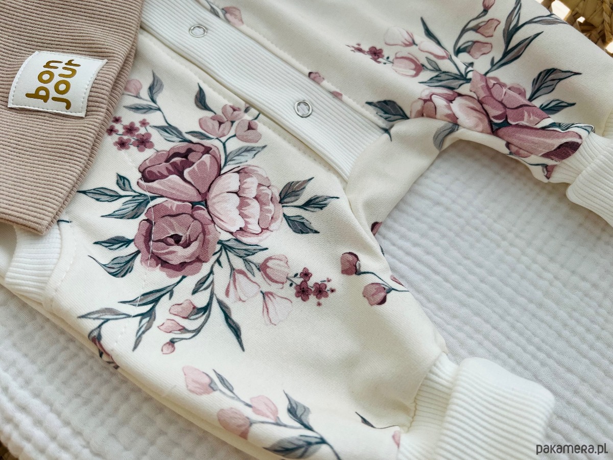 Jasny kombinezon dresowy dla dziewczynki w kwiaty