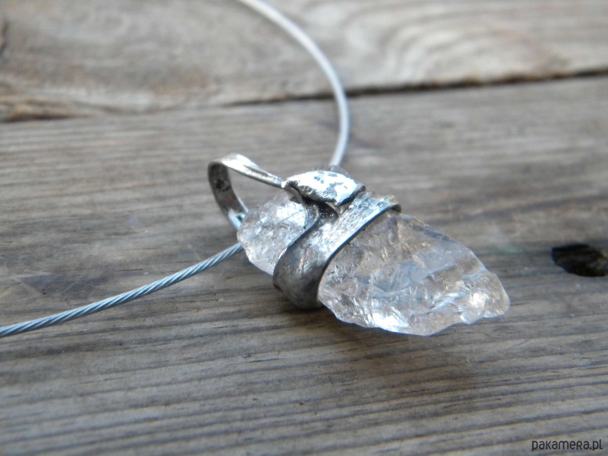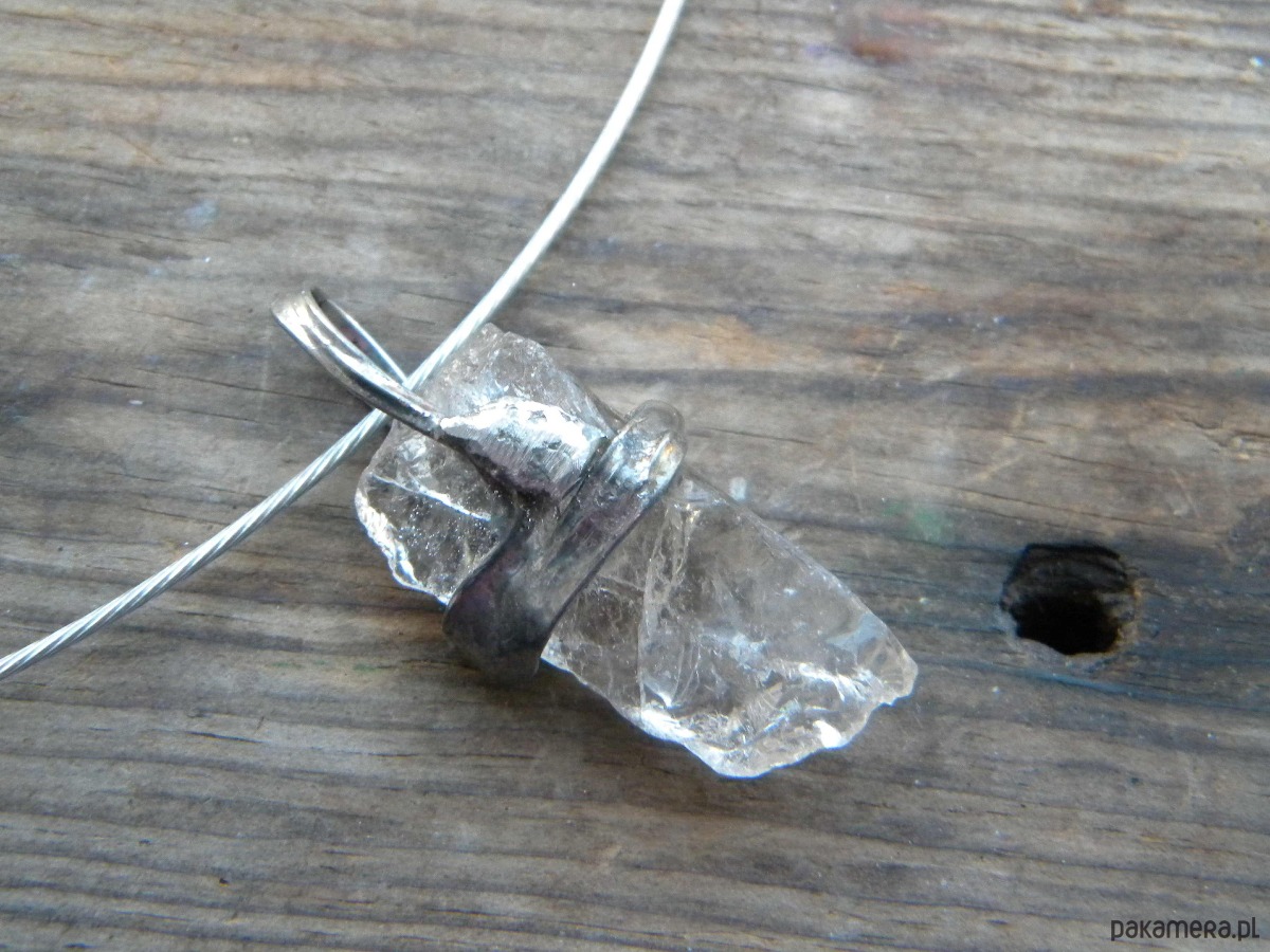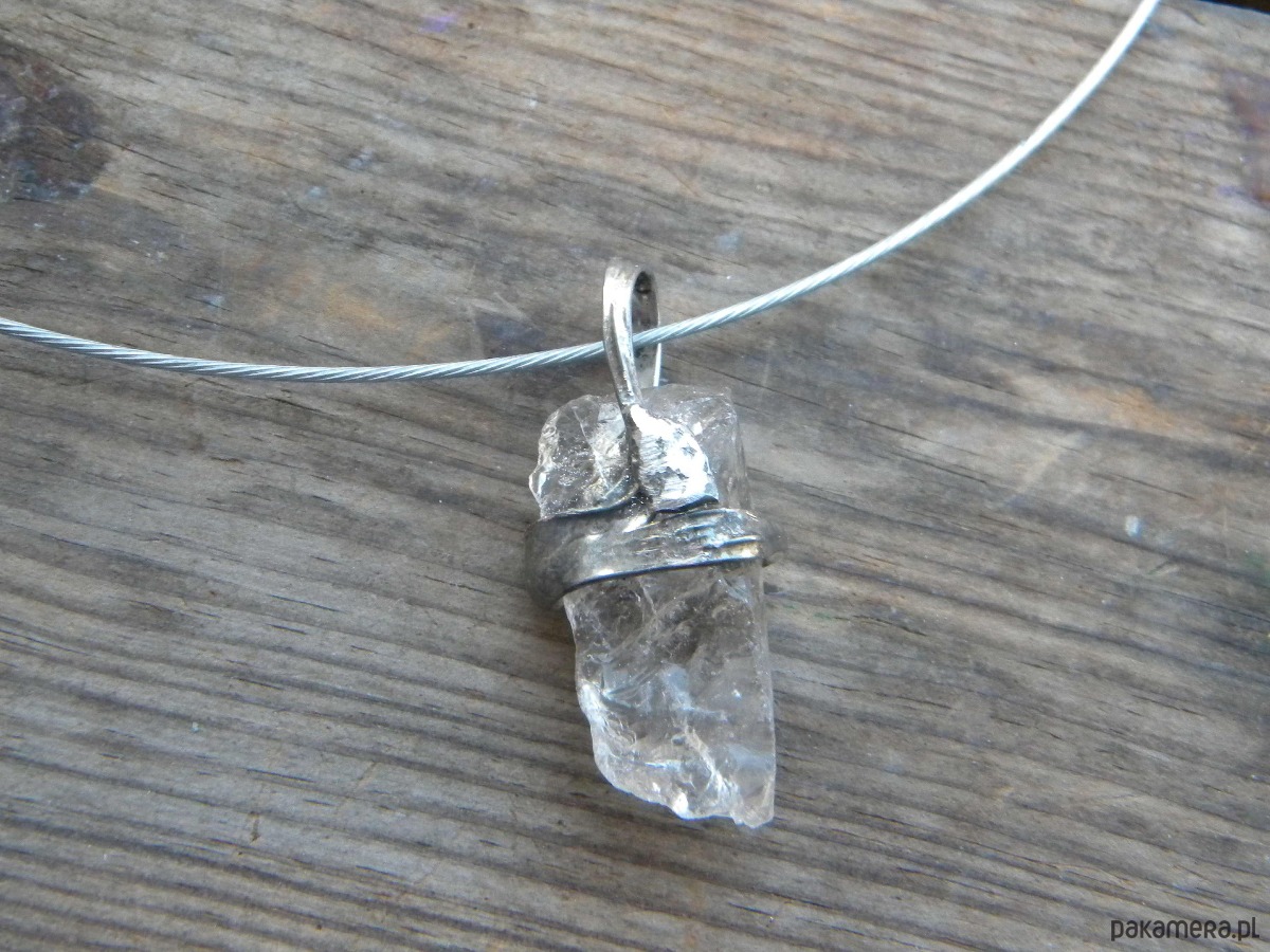 surowy kwarc dymny oprawiony w ocynowaną miedz.