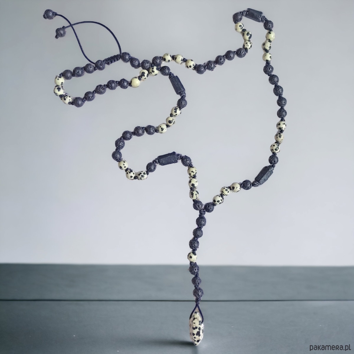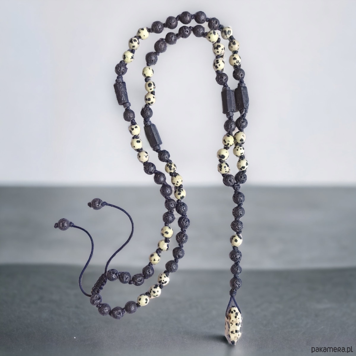 Jaspis dalamatyński, turmalin, lawa : naszyjnik męski