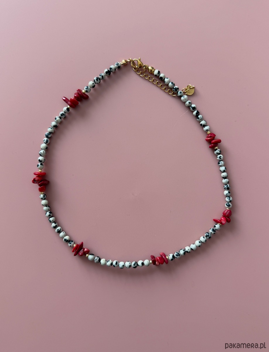 Naszyjnik z jaspisu dalmatyńskiego i koralowca.