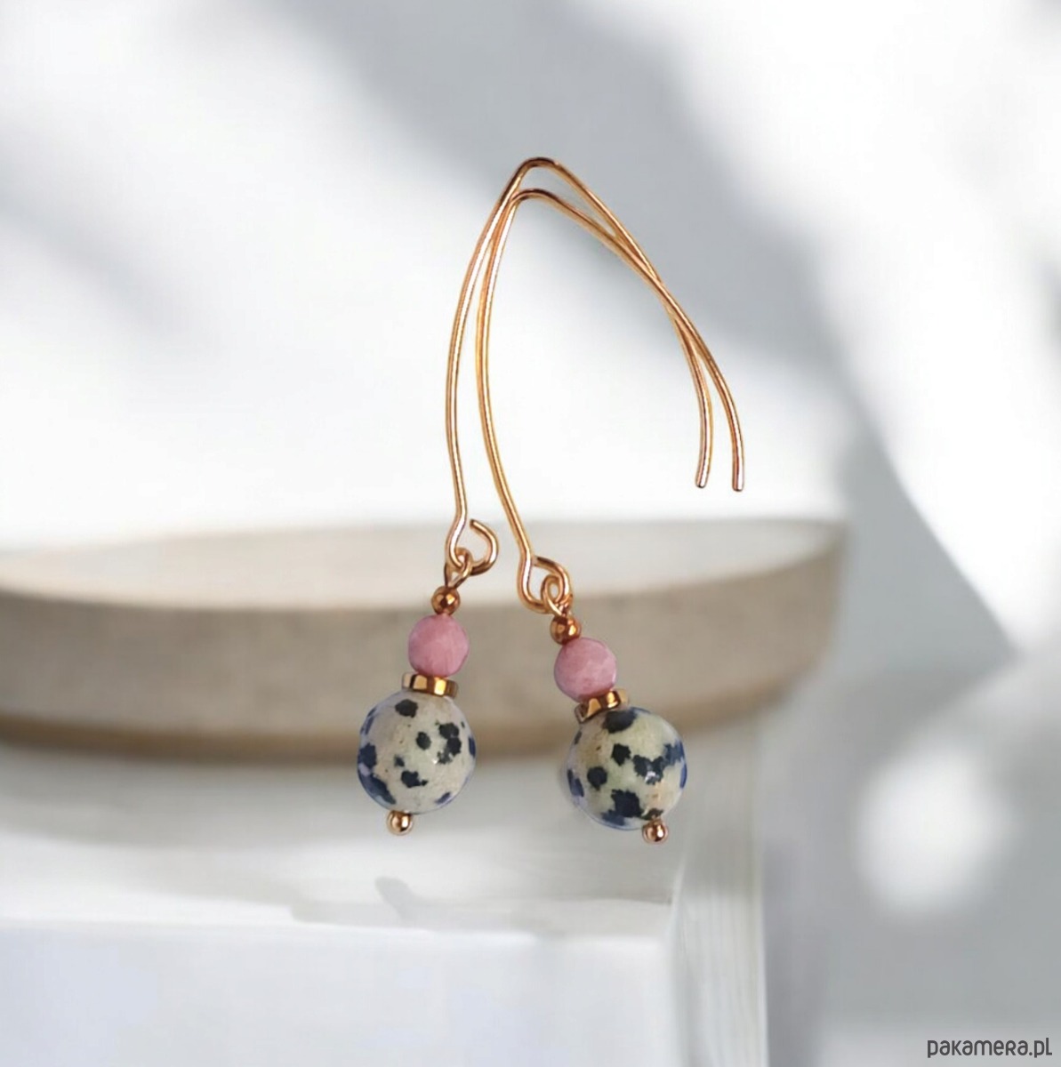 Jaspis dalmatyński i rodonit : kolczyki długie