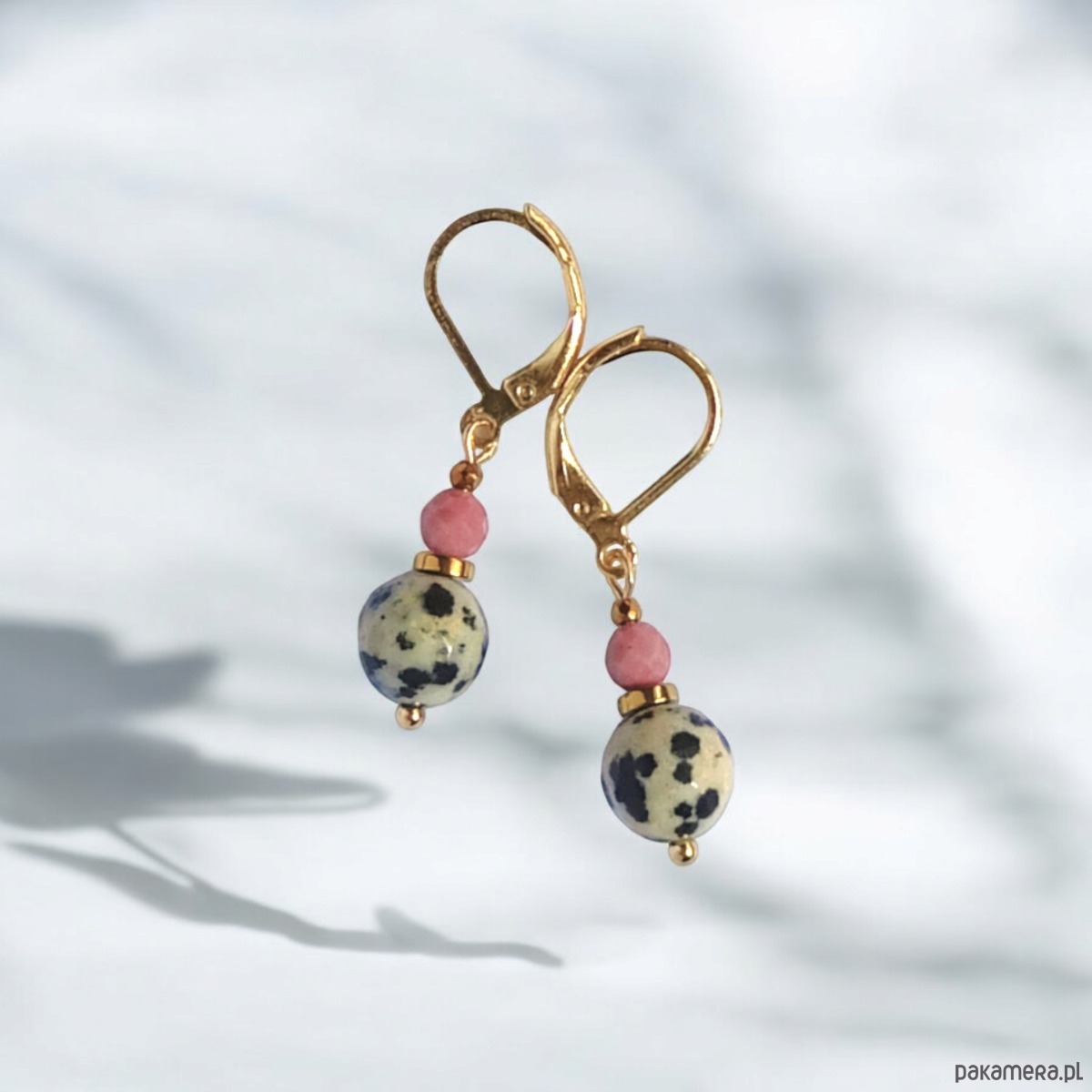 Jaspis dalmatyński i rodonit : kolczyki krótkie