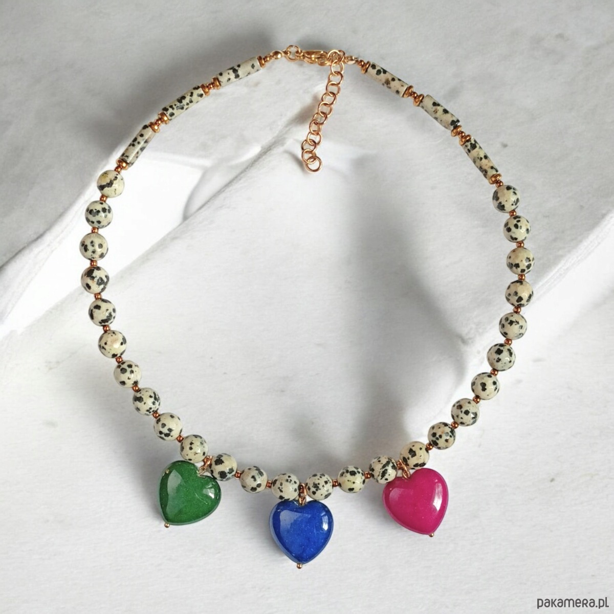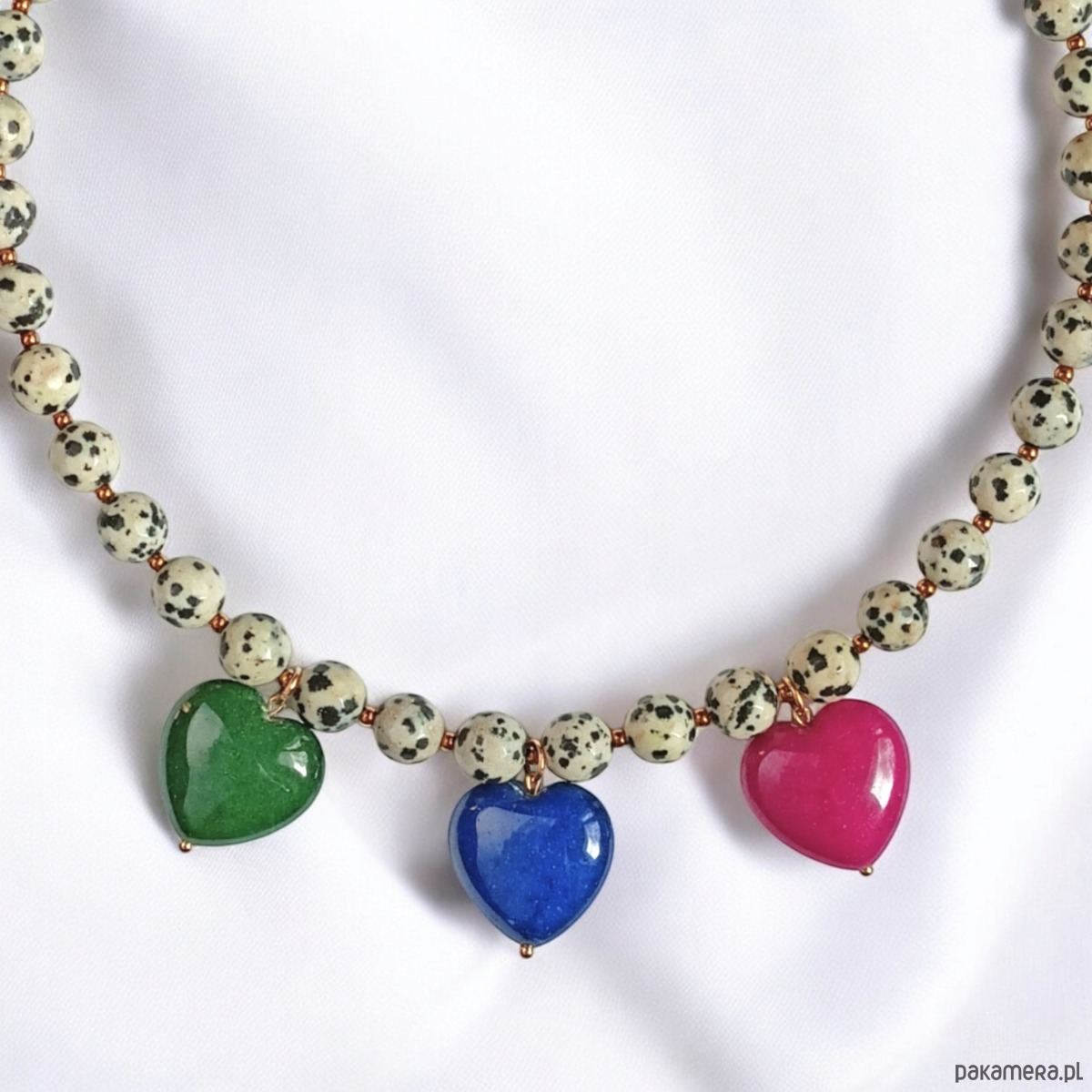 Jaspis dalmatyński i serca : naszyjnik : 3 kolory