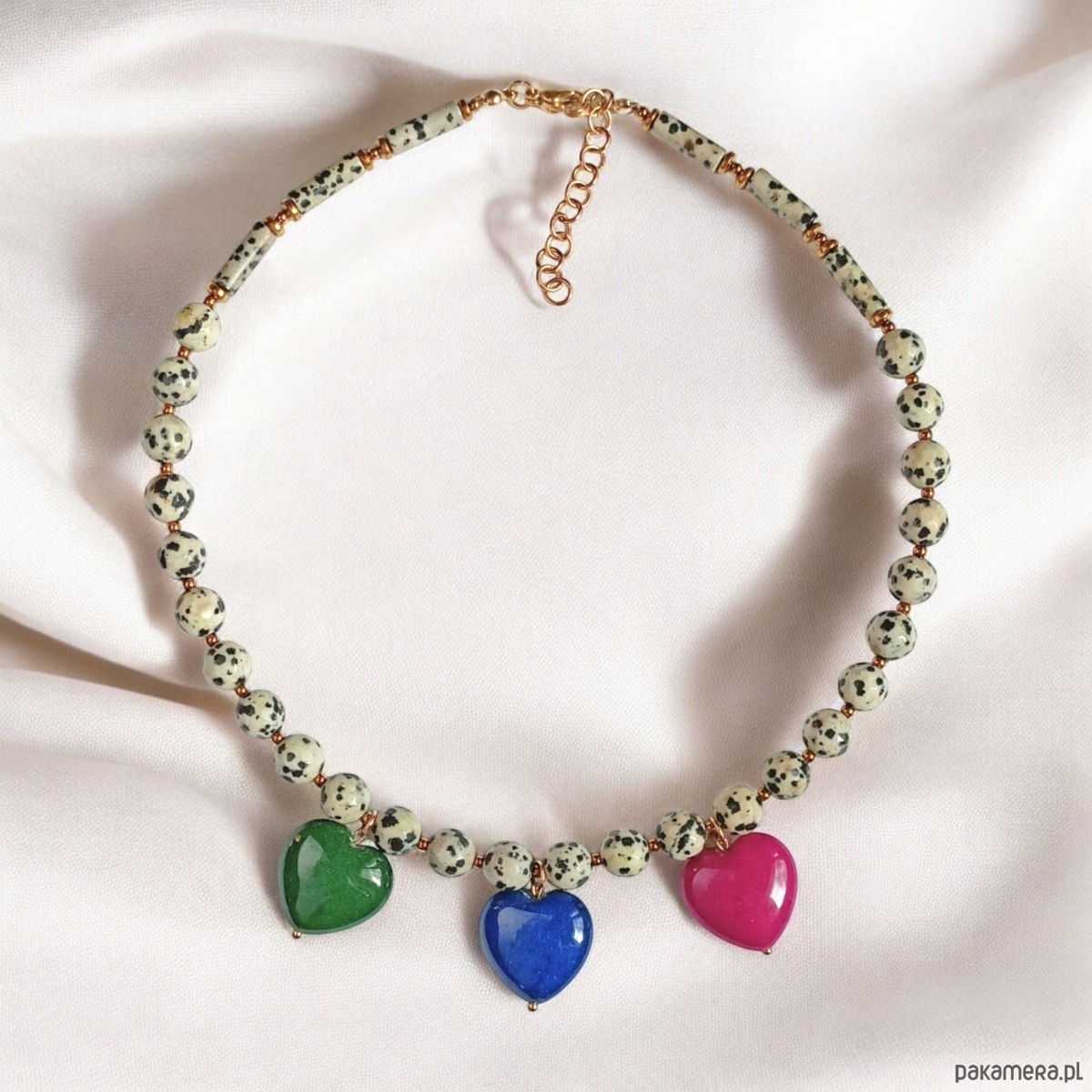 Jaspis dalmatyński i serca : naszyjnik : 3 kolory