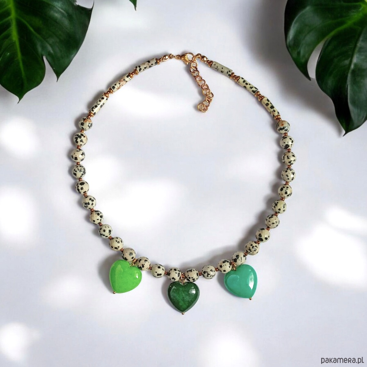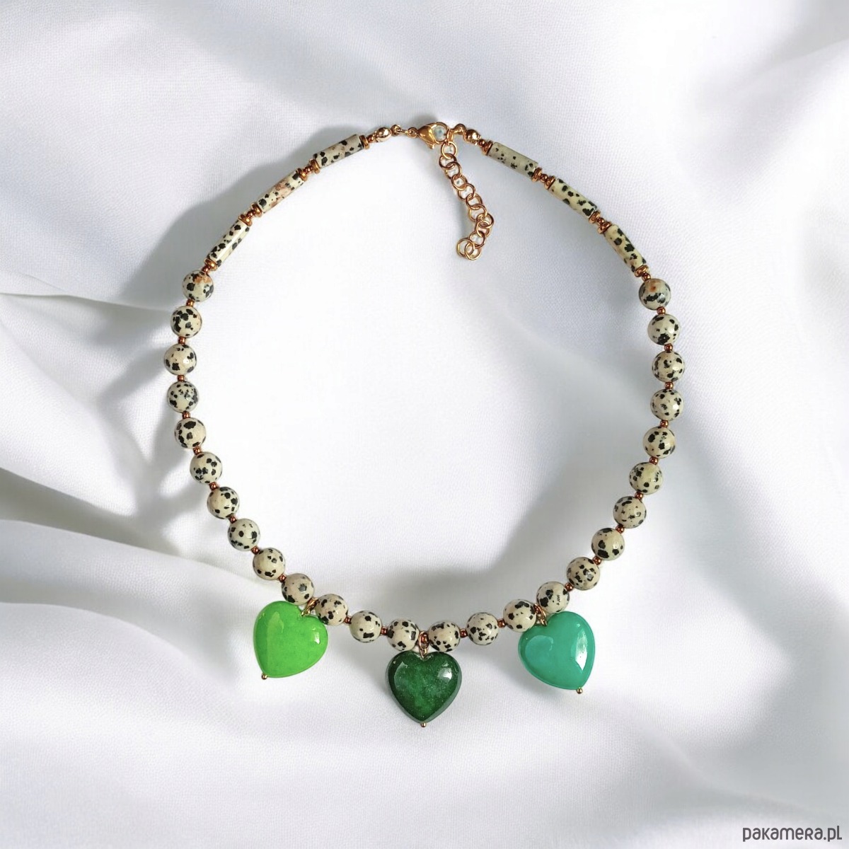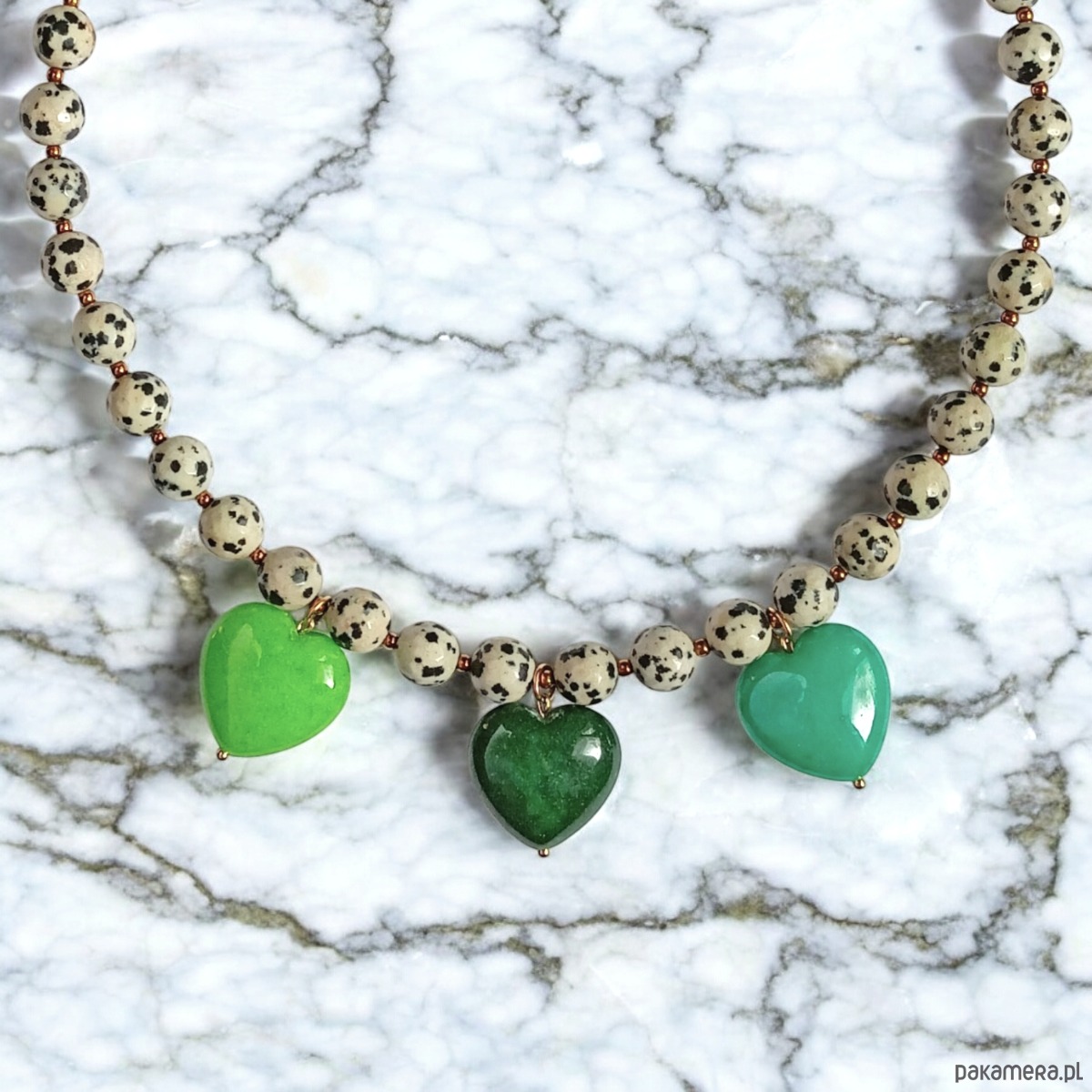 Jaspis dalmatyński i serca : naszyjnik : zieleń