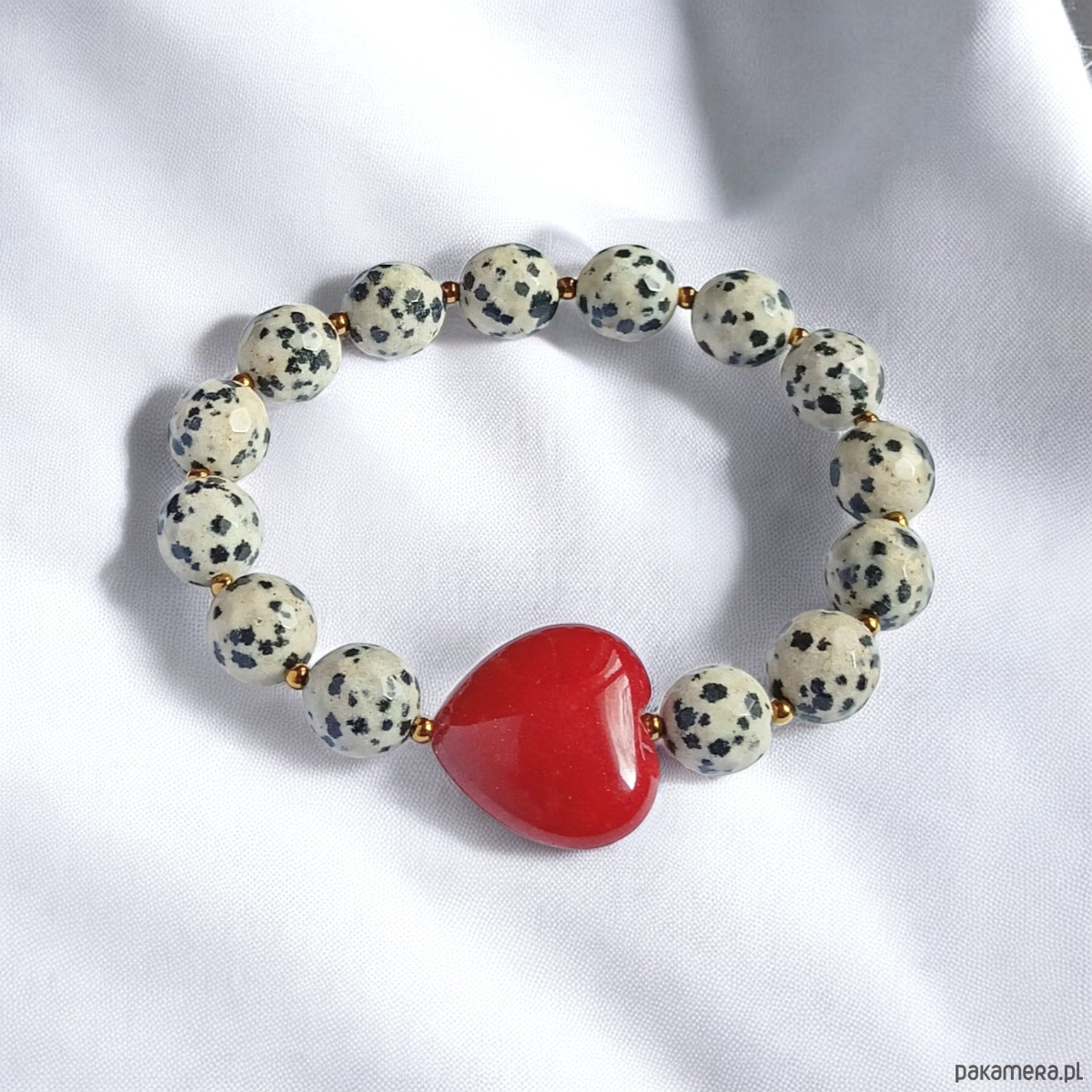 Jaspis dalmatyński i serce : CZERWIEŃ : bransoletka na gumce