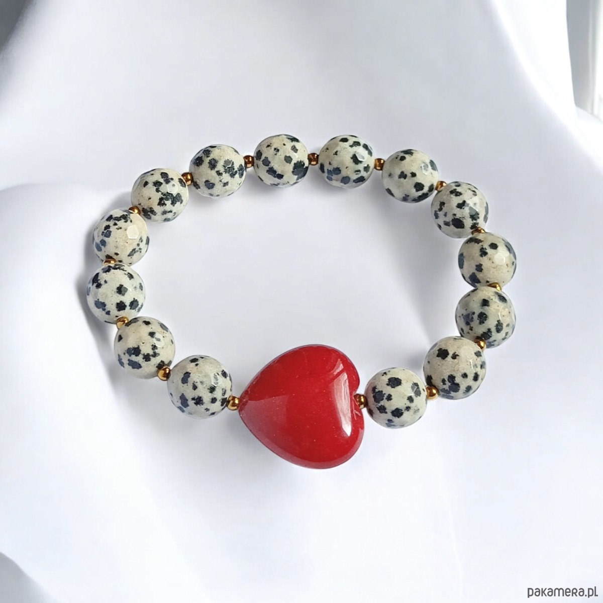 Jaspis dalmatyński i serce : CZERWIEŃ : bransoletka na gumce