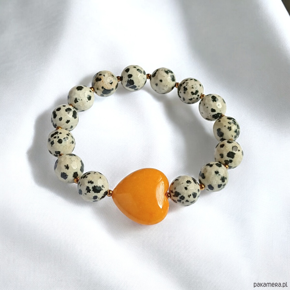 Jaspis dalmatyński i serce : MIODOWE : bransoletka na gumce