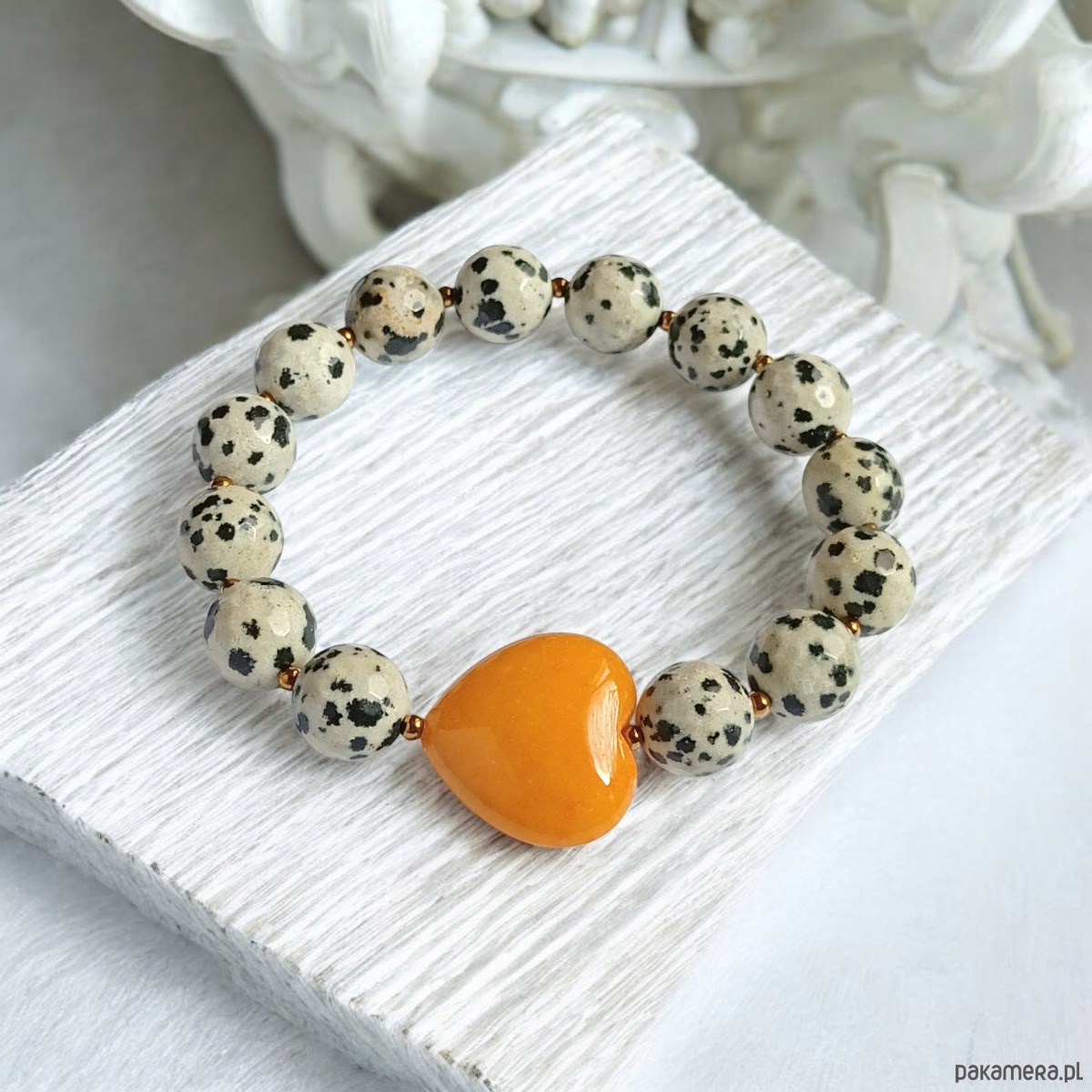 Jaspis dalmatyński i serce : MIODOWE : bransoletka na gumce