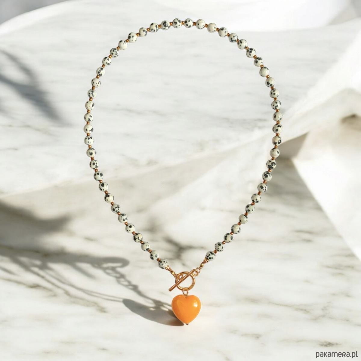 Jaspis dalmatyński i serce : miodowe : naszyjnik