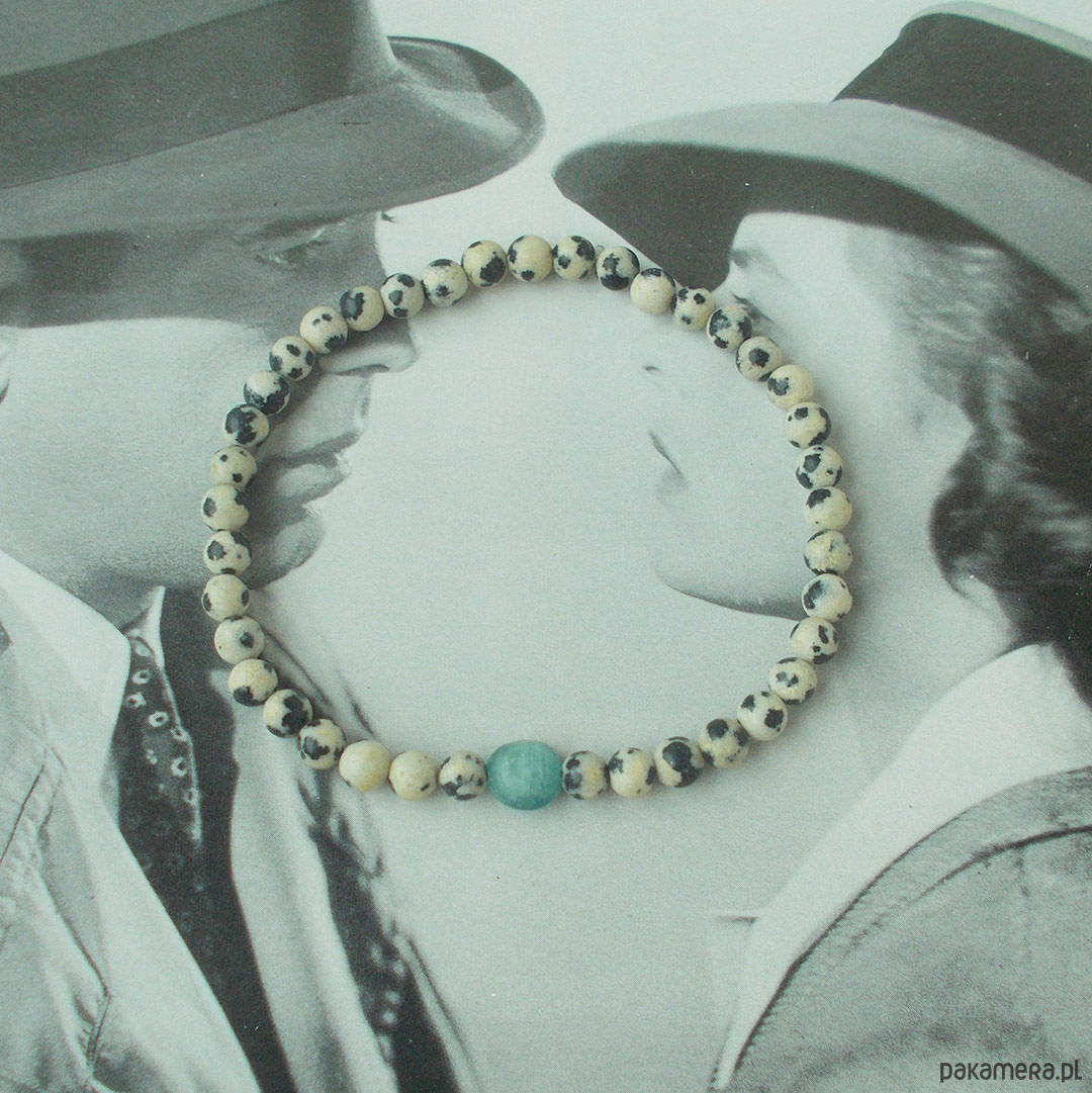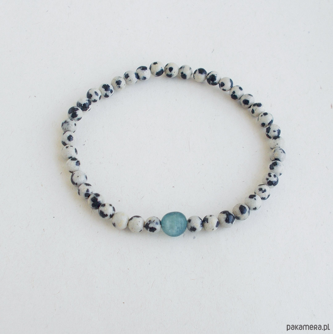 Stylowa i wygodna bransoletka wykonana z kuleczek jaspisu i z niebieskiego kianitu