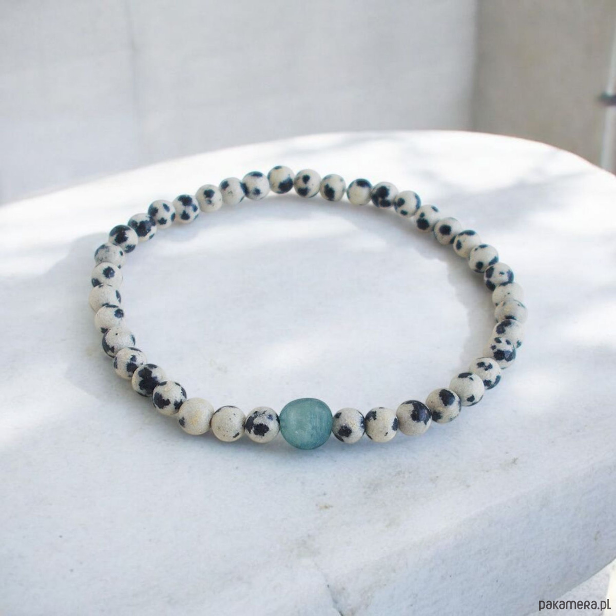 Stylowa i wygodna bransoletka wykonana z kuleczek jaspisu i z niebieskiego kianitu