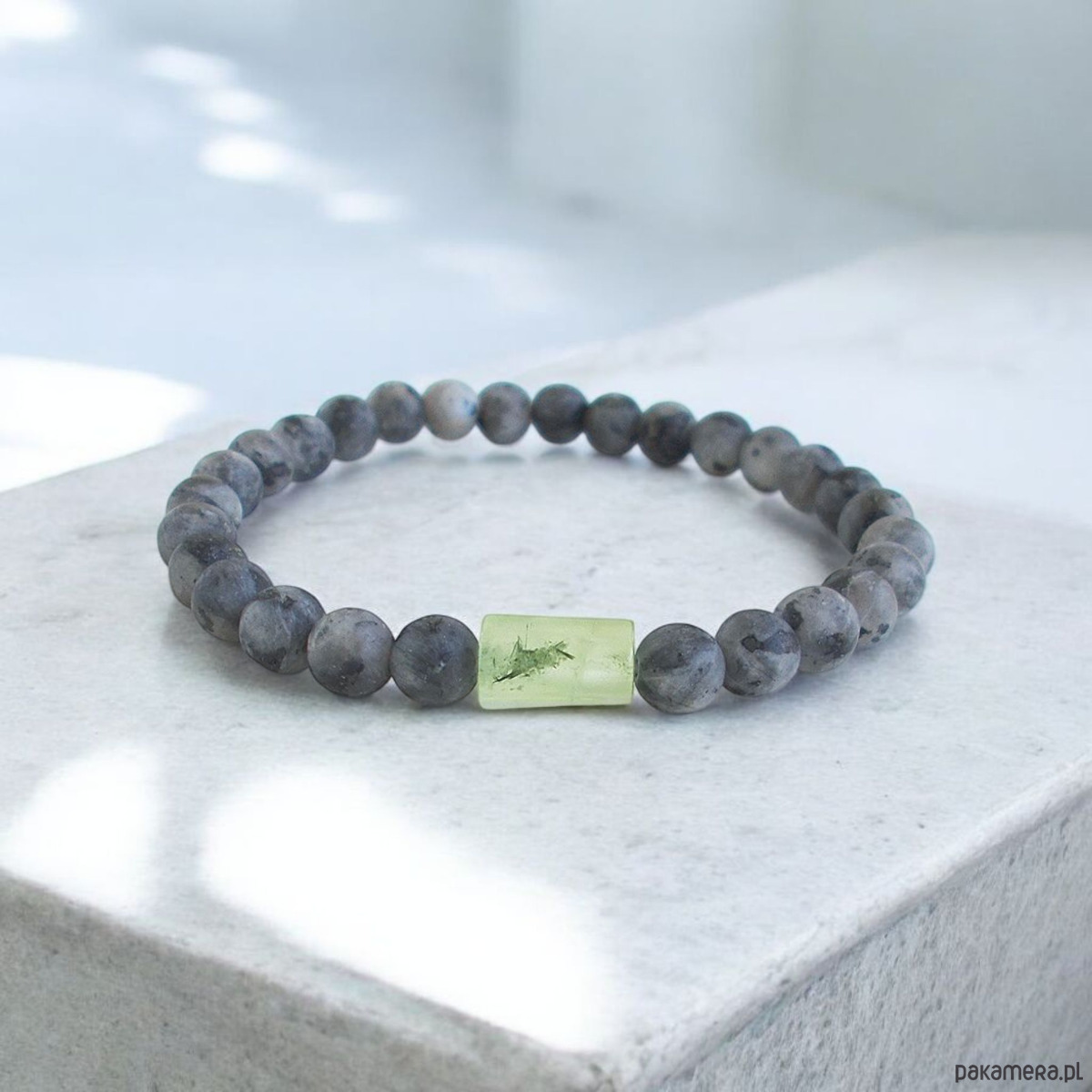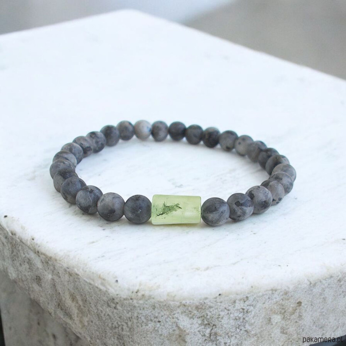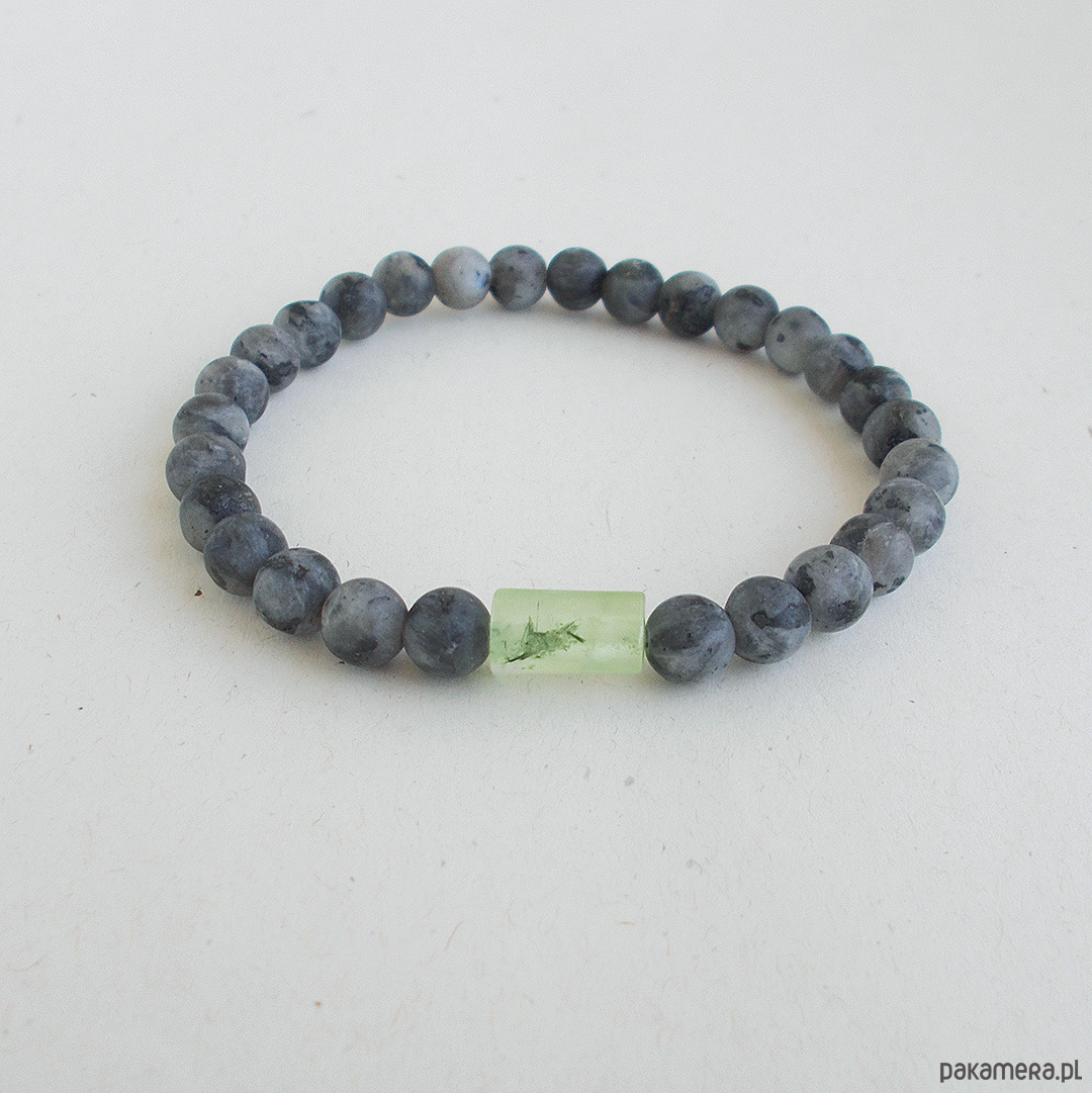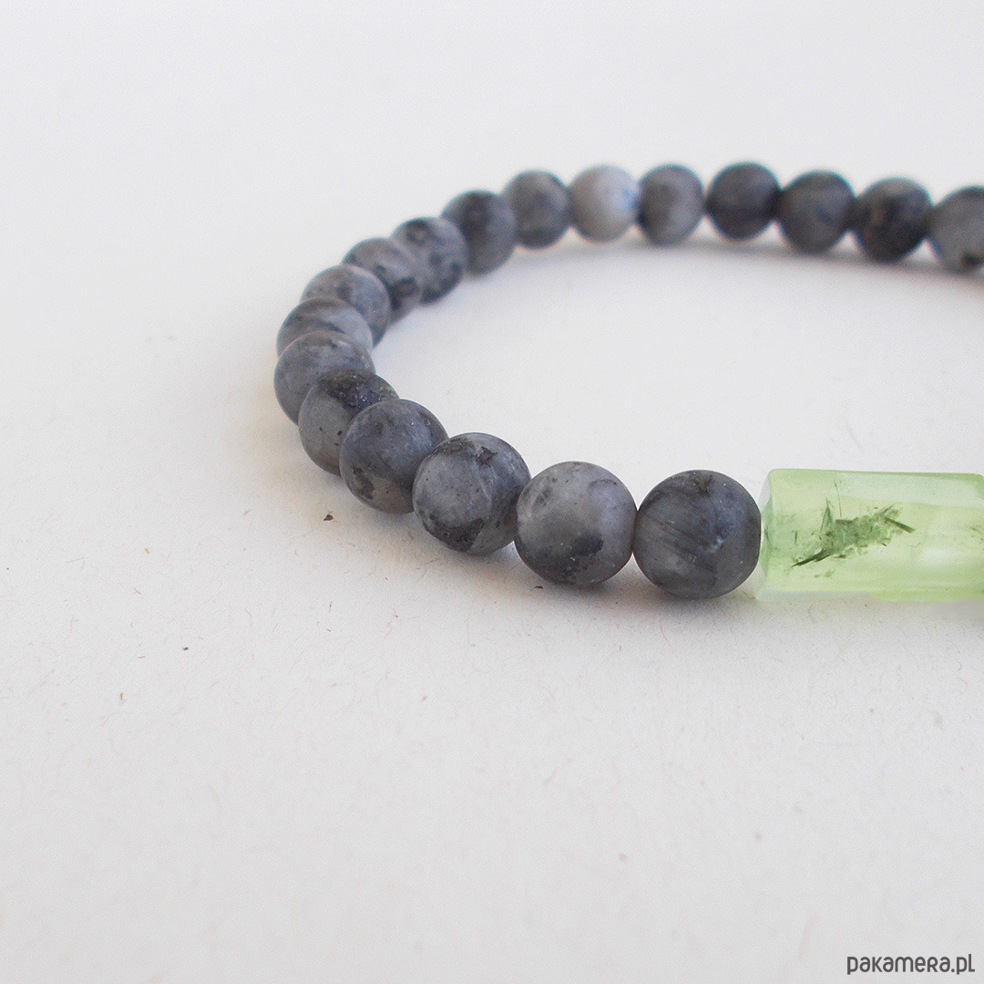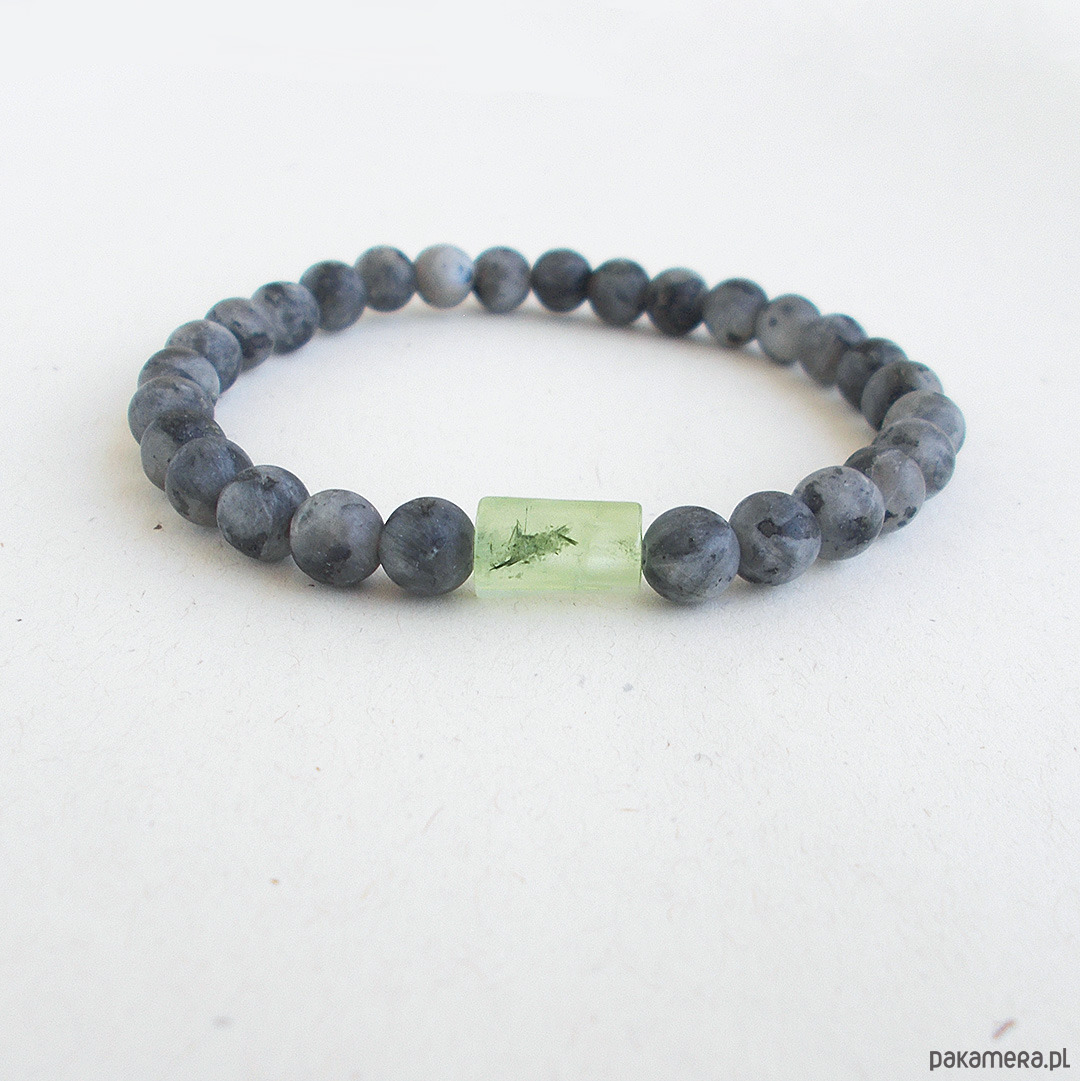 Stylowa i wygodna bransoletka wykonana z kulek larvikitu i z prehnitu