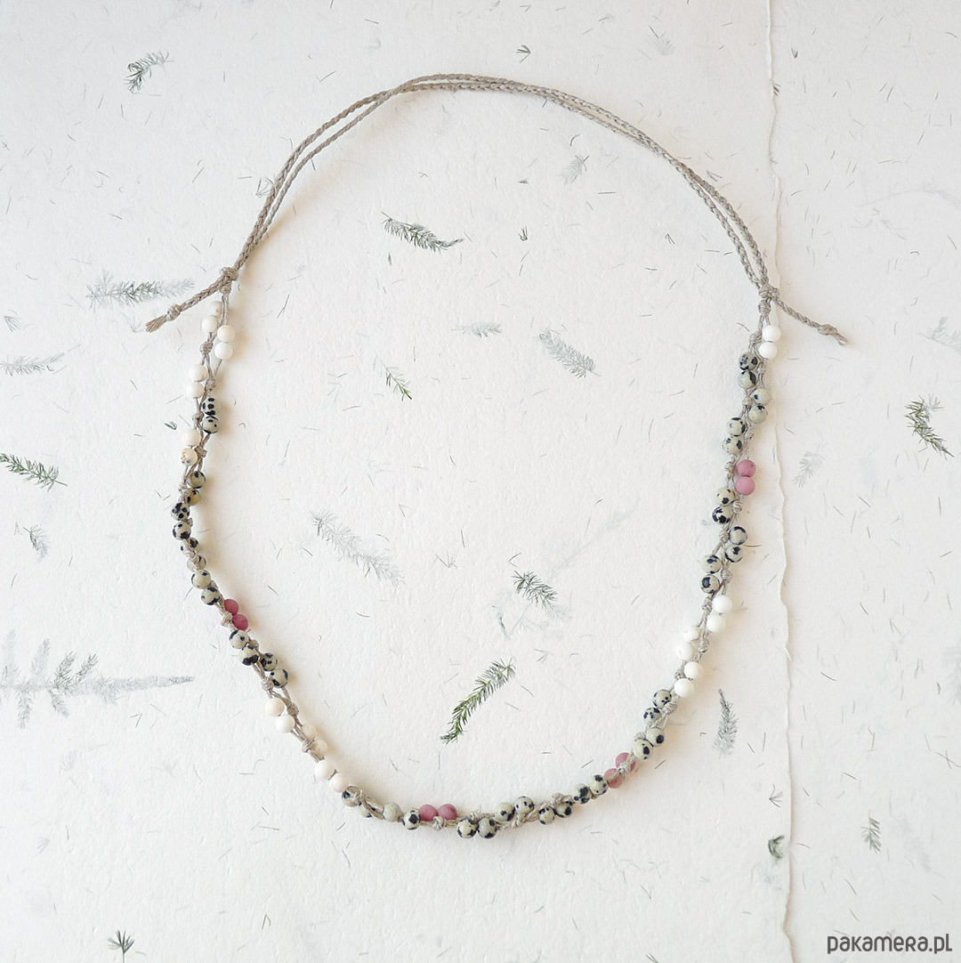 len naturalny, kulki jaspis dalmatyńczyk, rodonit, jaspis