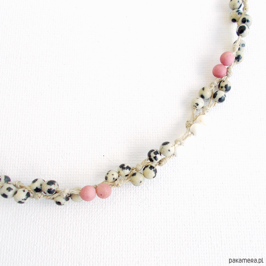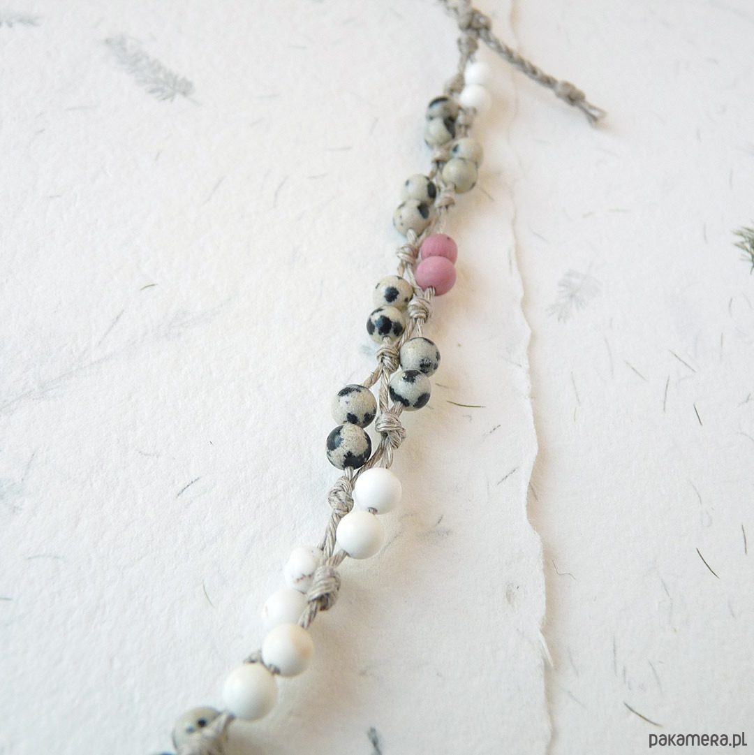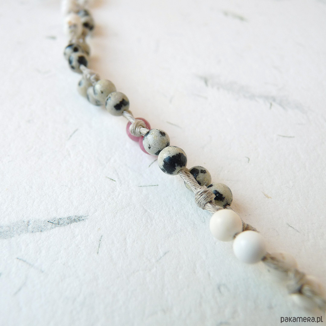 len naturalny, kulki jaspis dalmatyńczyk, rodonit, howlit