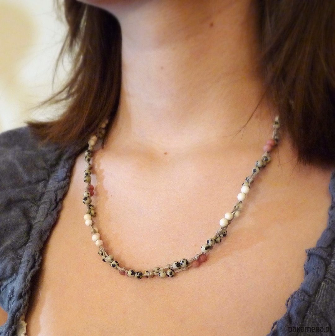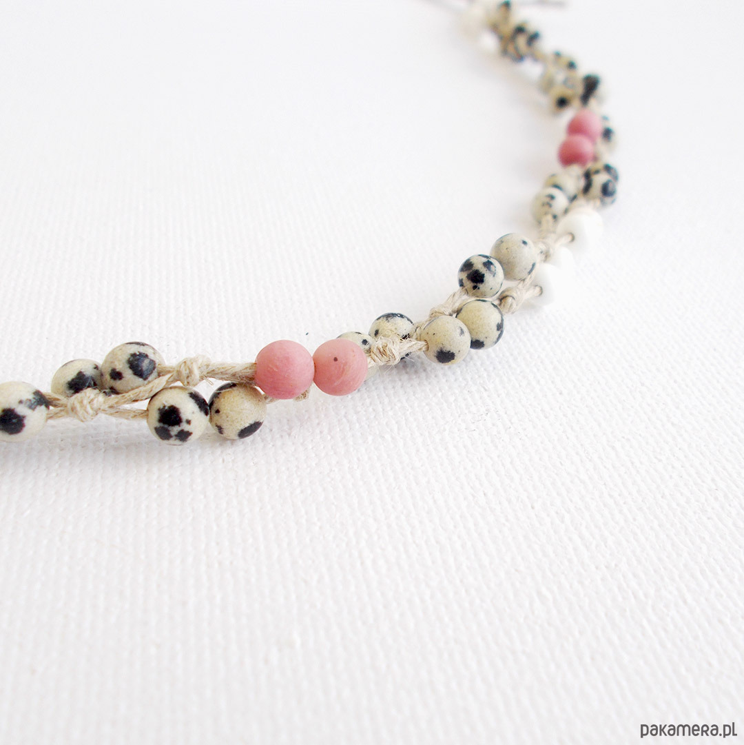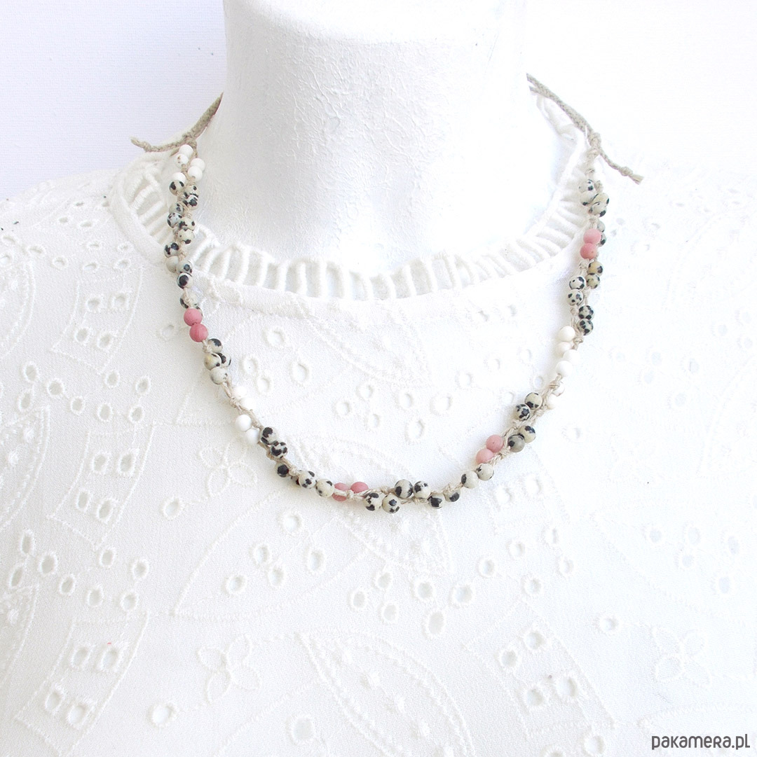 len naturalny, kulki jaspis dalmatyńczyk, rodonit, howlit