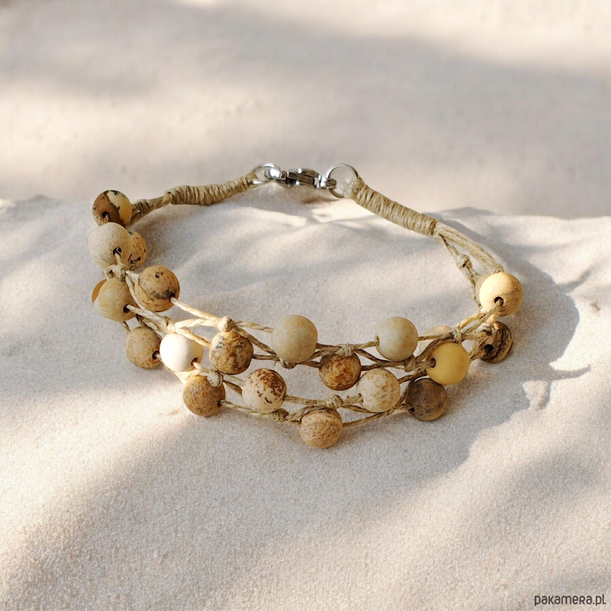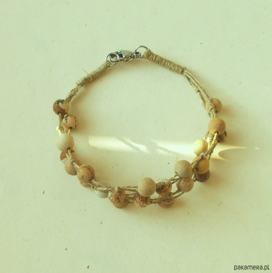 Jaspis krajobrazowy Bransoletka lniana
