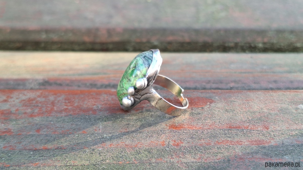 Jaspis na zielono - pierścionek regulowany