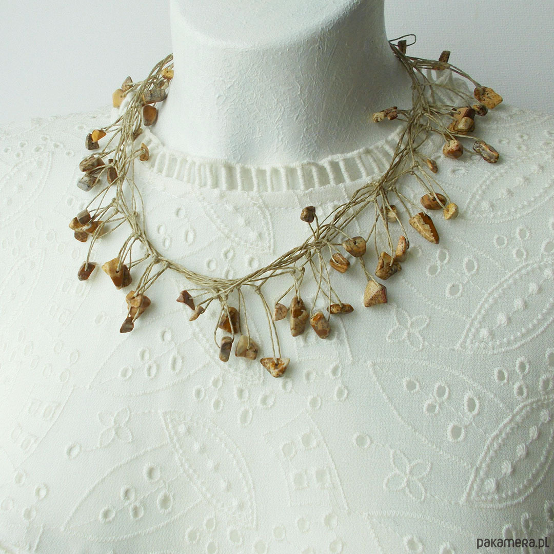 Oryginalny naszyjnik na bazie naturalnego lnu