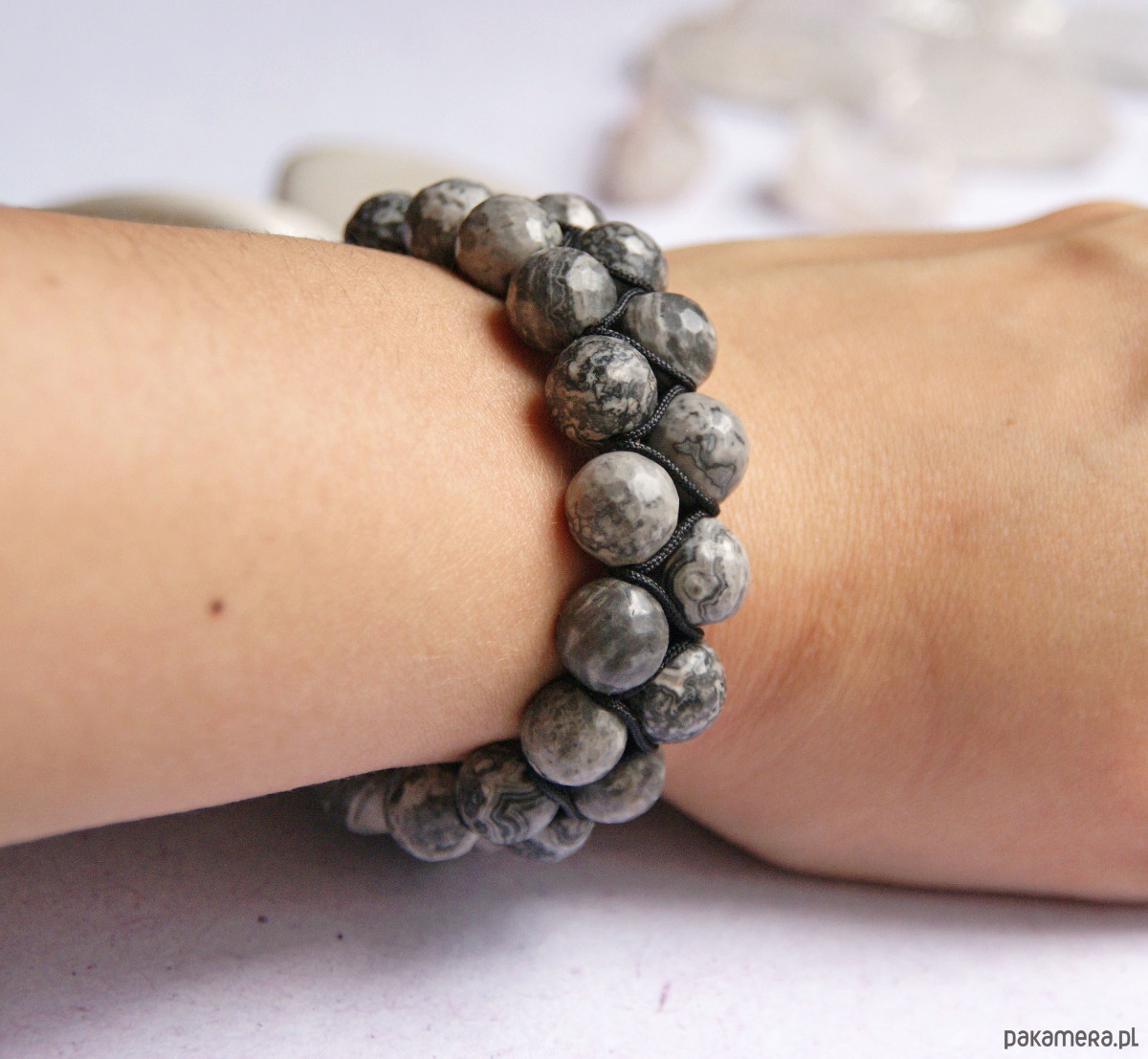 wykonana z fasetowanego jaspisu szarego (kule 10mm) .