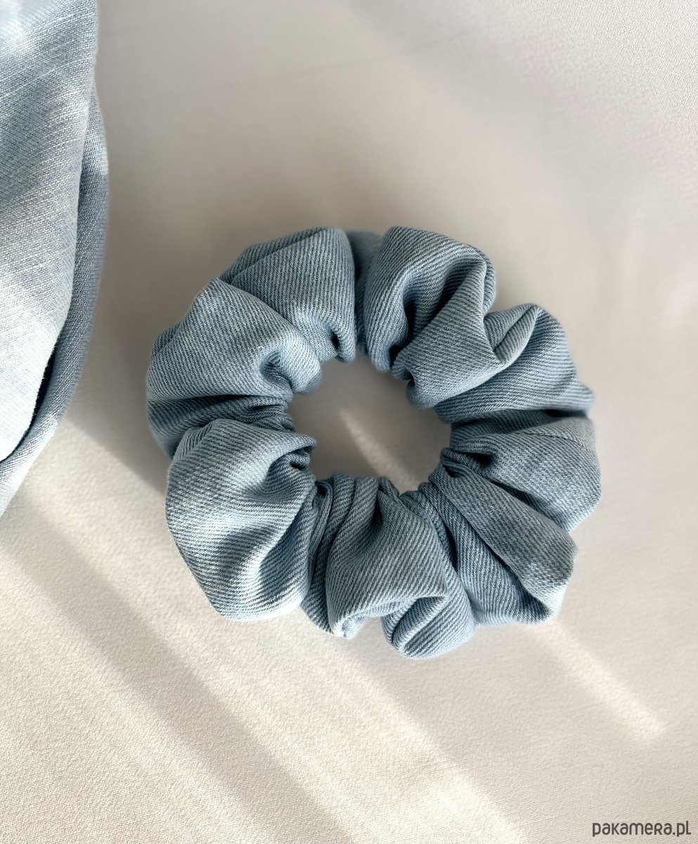 Gunka do włosów z miękkiego błękitnego jeansu to efektowny dodatek do włosów, który dopełni Twoją stylizację w wyjątkowy sposób, łącząc komfort i styl.