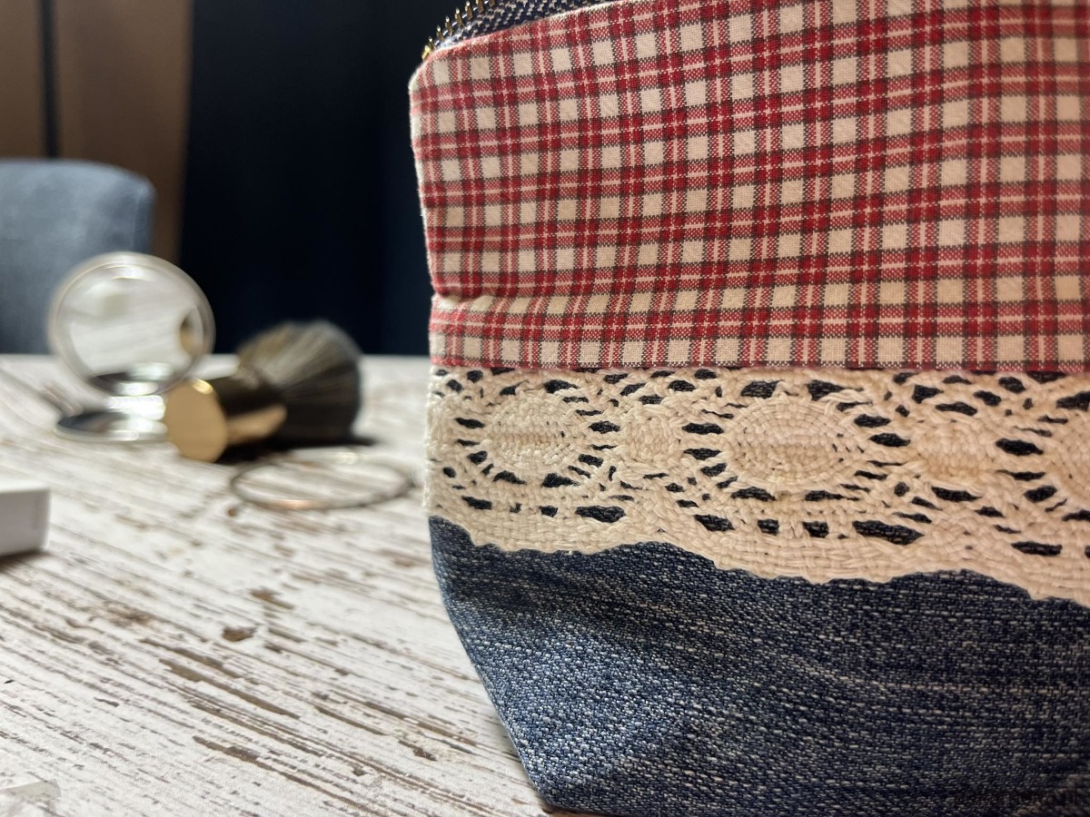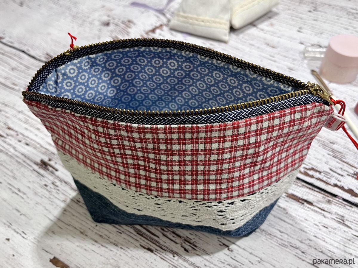 Kosmetyczkę MISS szyjemy w naszej małej pracowni na poddaszu. Wykonujemy ją zgodnie z zasadą slow fashion i less waste ze starannie wyszukanych tkanin (bawełna, jeans). Kosmetyczka jest jedyna w swoim rodzaju, praktyczna i pojemna.