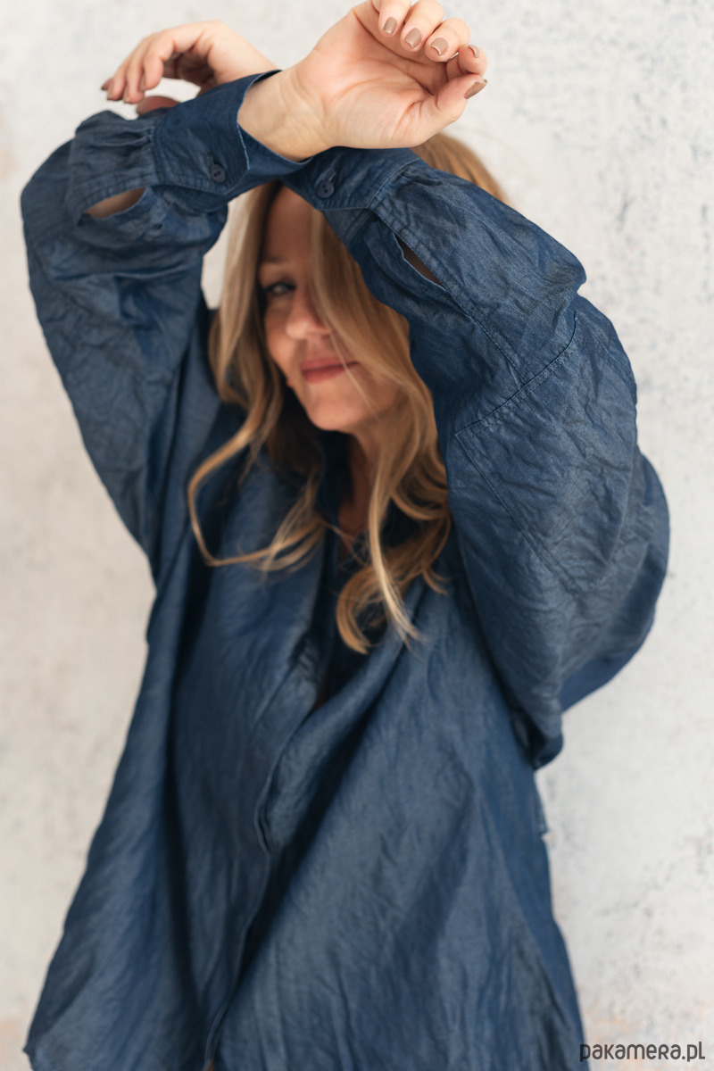 Jeansowa koszula z bufiastymi rękawami FRIDA III