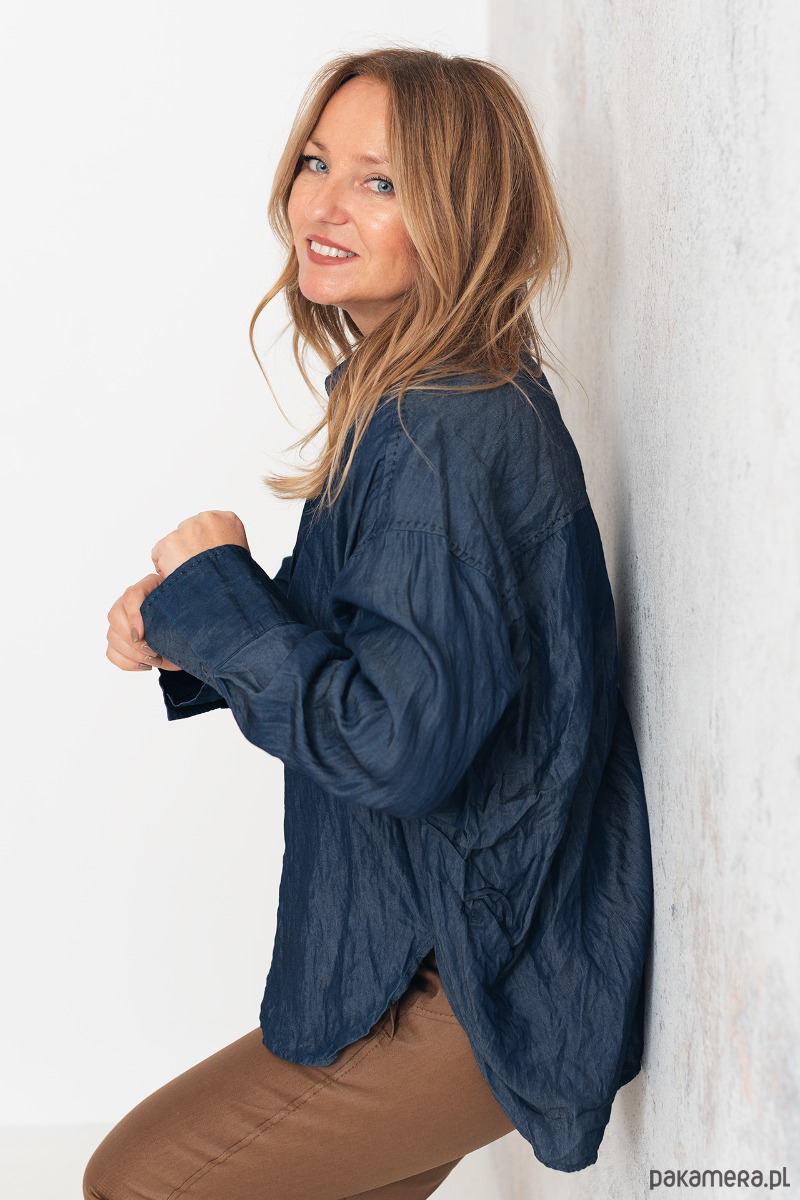 Jeansowa koszula z tencela z drapowaniem LILIA