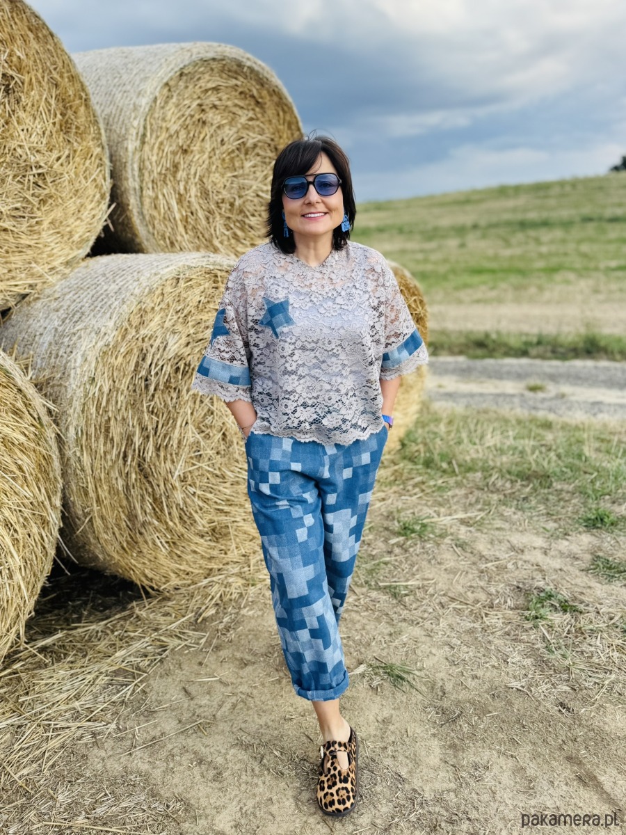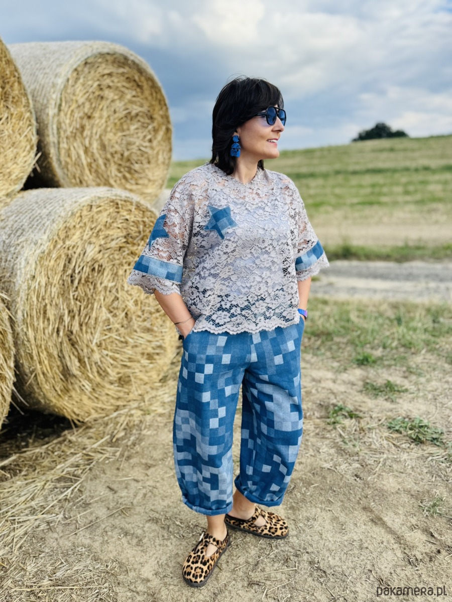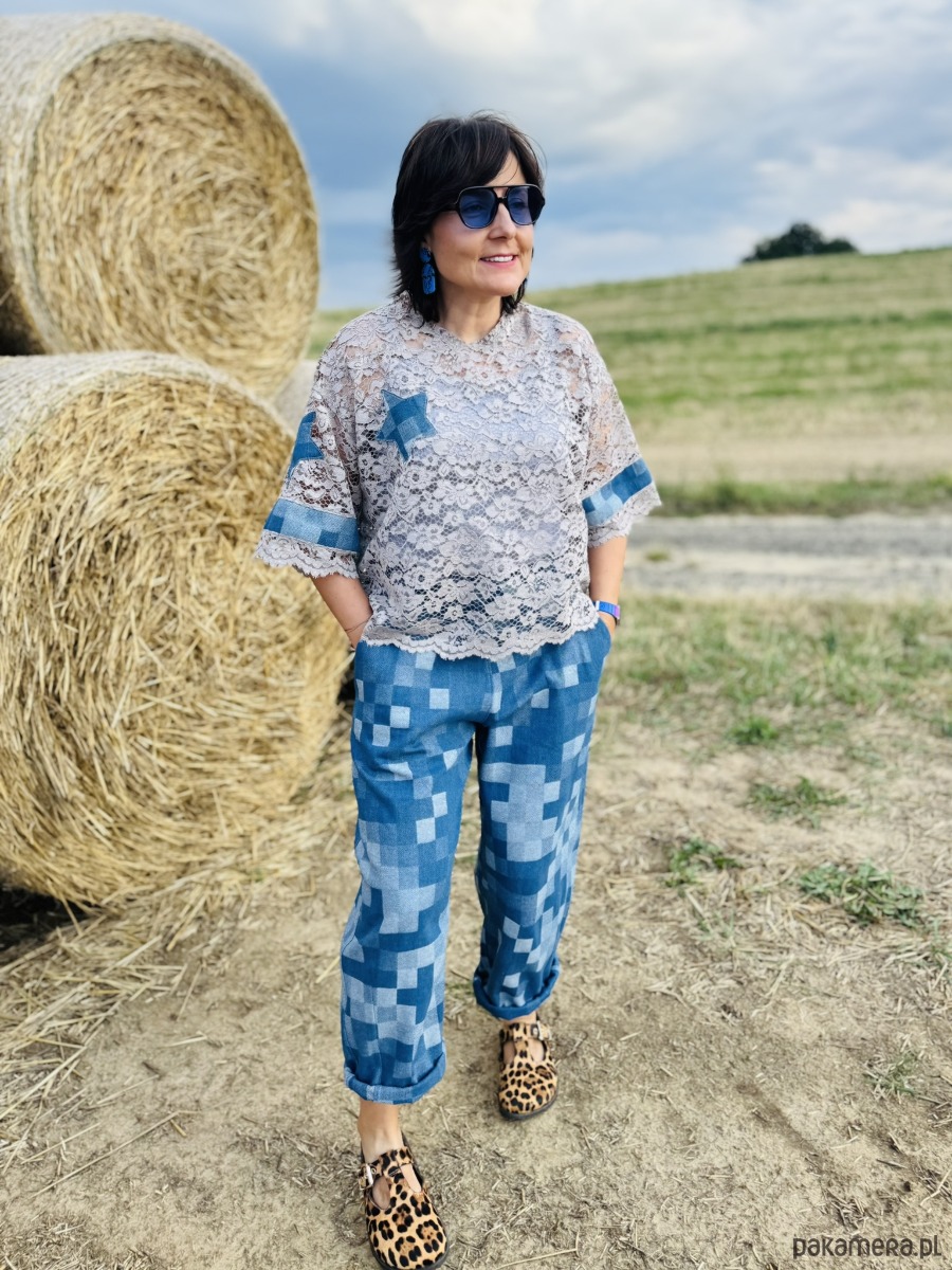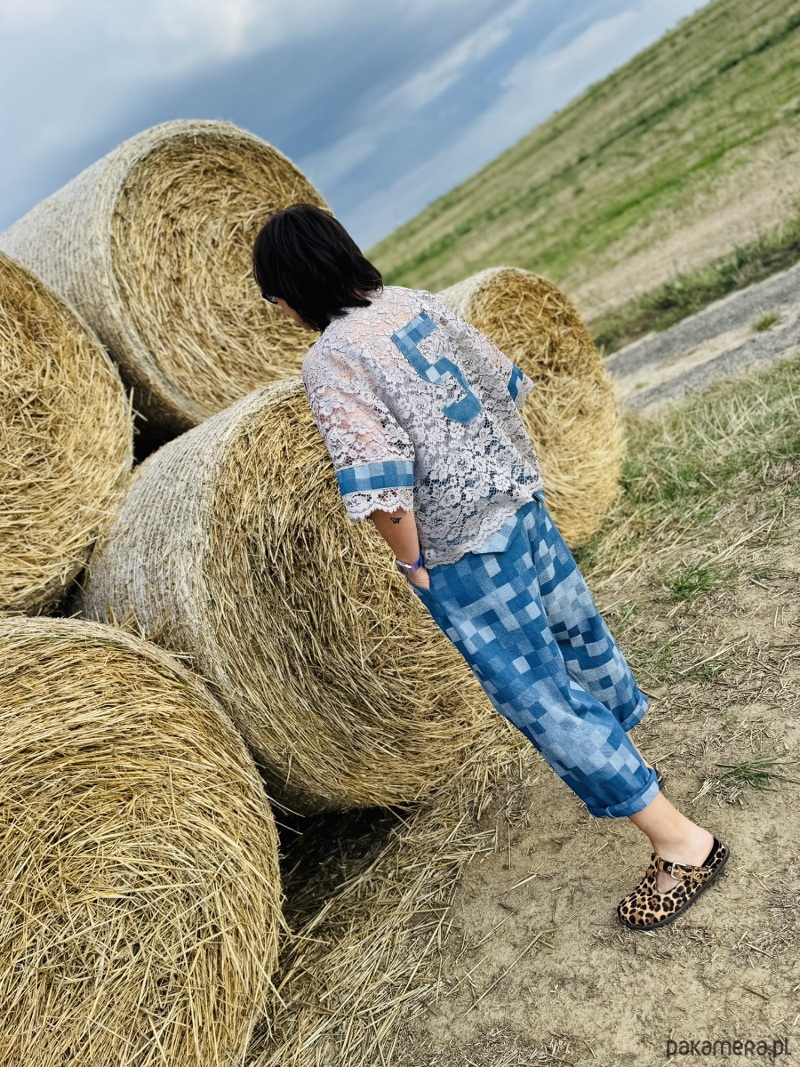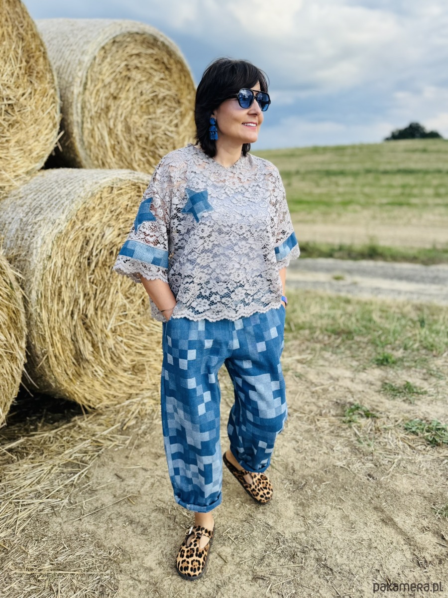 Odważne, oryginalne, wygodne — te spodnie to idealne połączenie stylu i funkcjonalności. Uszyte z grubszego jeansu w szachownicę, przyciągają wzrok i nadają charakteru każdej stylizacji.