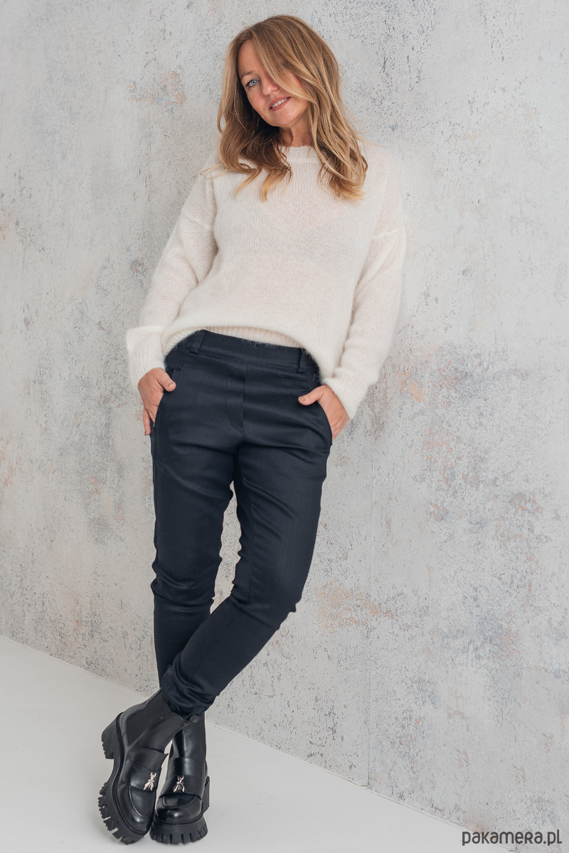 Zwężane, zakręcone nogawki i zaokrąglony karczek idealnie podkreślają sylwetkę, a efekt "lift up" subtelnie modeluje kształty.