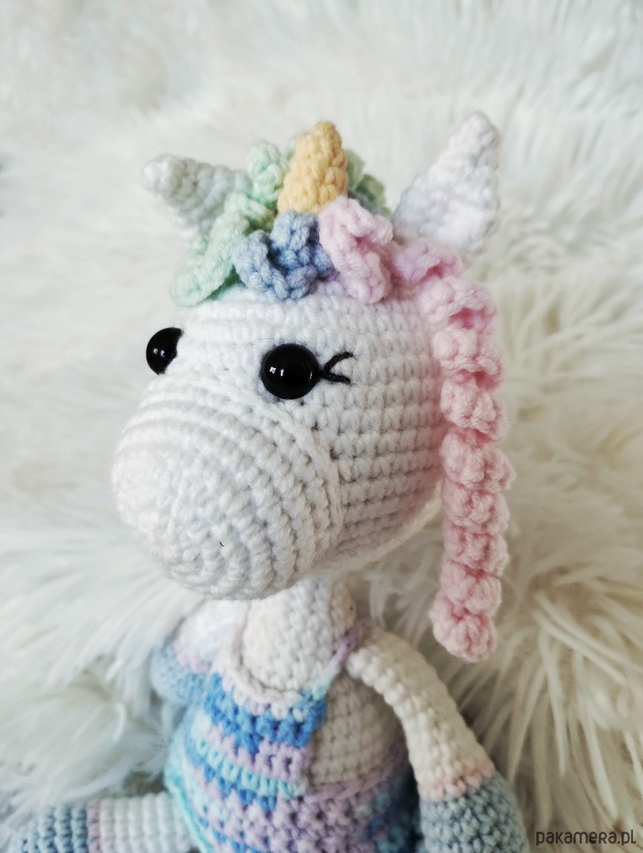 A zabawka to jednorożec Julka. Ma ok 21 cm wzrostu, kolorową grzywę i ogonek, i róg - jak na jednorożca przystało . Będzie doskonałą towarzyszką każdej zabawy.
