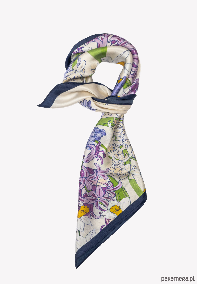 Jedwabna apaszka z motywem kwiatów 70x70 cm