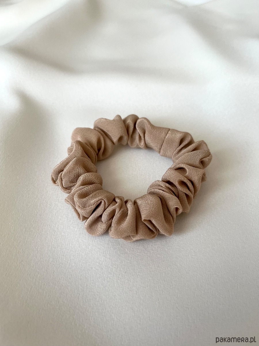 Jedwabna beżowa scrunchie w wersji mini 8 cm to subtelny dodatek na każdą okazję. Milutka i delikatna, pięknie przyozdobi Twoje włosy. Scrunchie ta doda charakteru każdej stylizacji – od codziennej po bardziej elegancką.