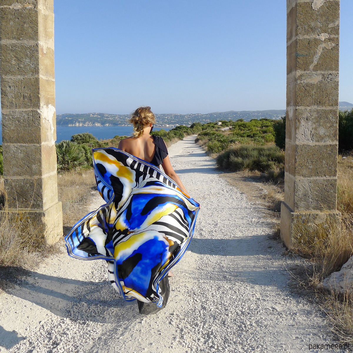 Chusta z najwyższej jakości jedwabiu naturalnego o splocie atłasowym.