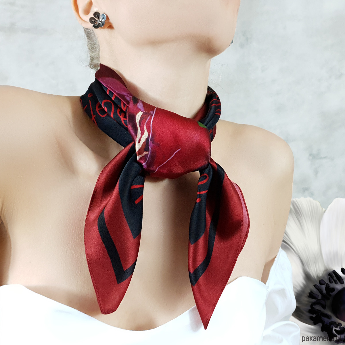 Chusta z najwyższej jakości jedwabiu naturalnego o splocie atłasowym.